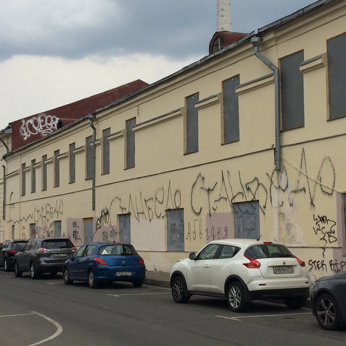 Данный ансамбль памятников архитектуры является объектом культурного наследия с соответствующим охранным статусом. Однако этот статус не мешает вандалам рисовать всякую ерунду на стенах завода. Вот так выглядела лишь одна сторона Центра в марте 2018 года