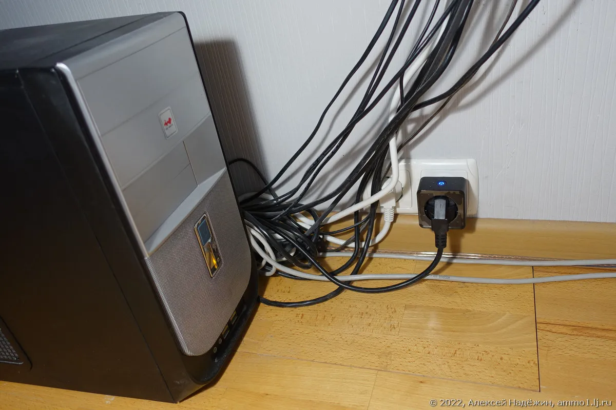 Для включения и выключения компьютера используется Wi-Fi-розетка. Я использовал самую простую Яндекс-розетку (она даже не умеет измерять потребление), подключив её не к Яндексу, а к приложению SmartLife.
