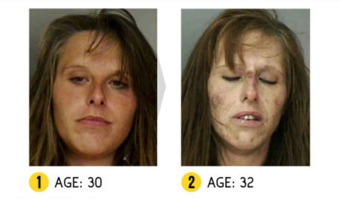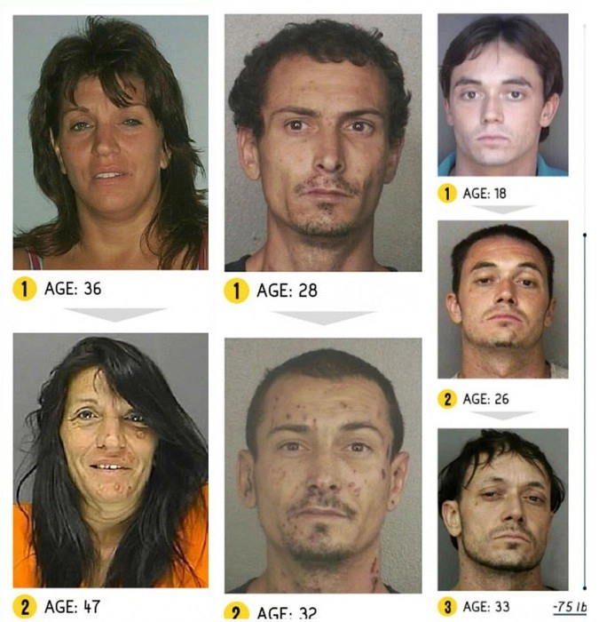 Давно известно, что наркотики негативно влияют на внешность, здоровье и умственные способности людей. От метамфетамина, например, человек быстро теряет вес, у него разрушаются зубы, на лице появляются язвы, организм быстро стареет. Употребляющие кокаин также стремительно худеют и страдают воспалениями слизистой носа. Из-за героина у человека образуются абсцессы, а кожа превращается в сплошную зудящую рану.