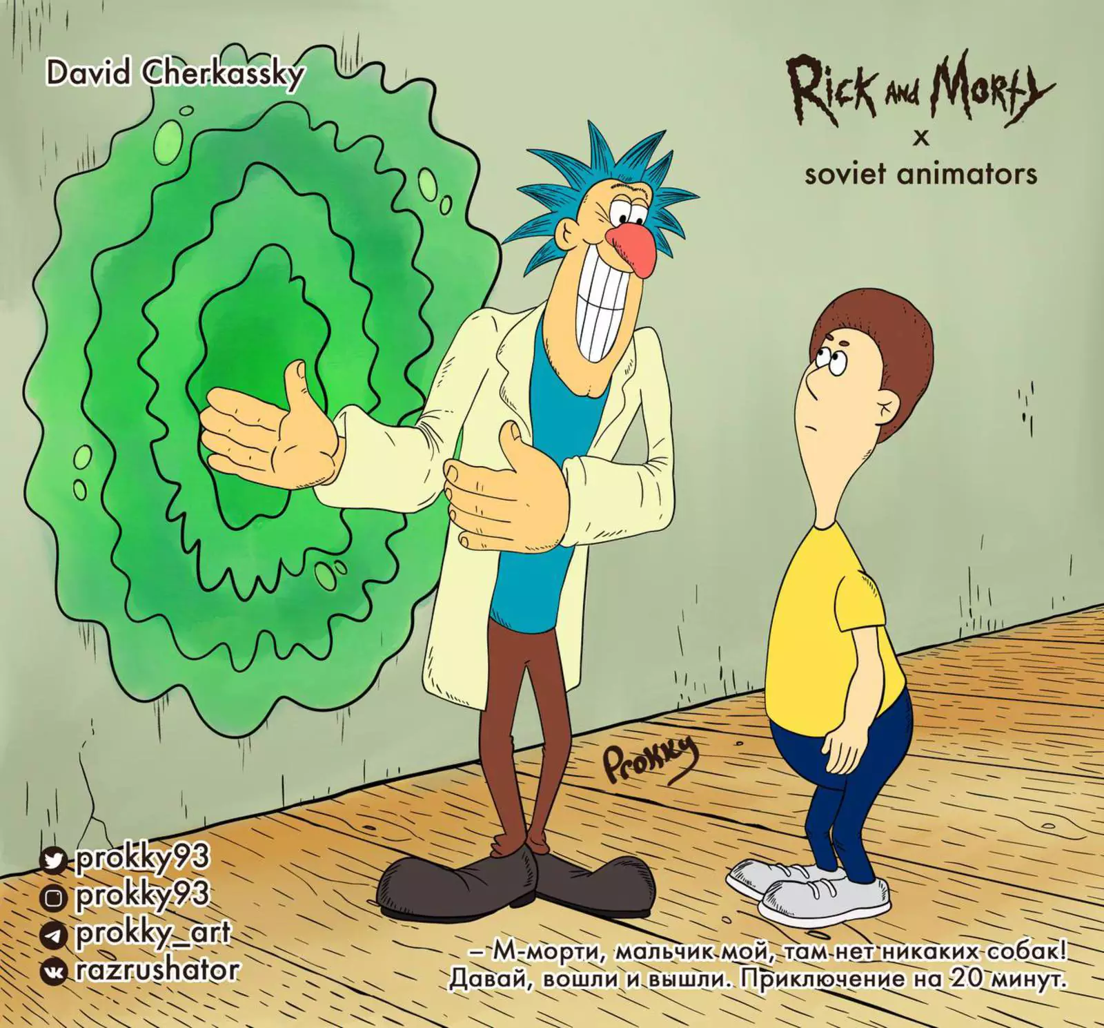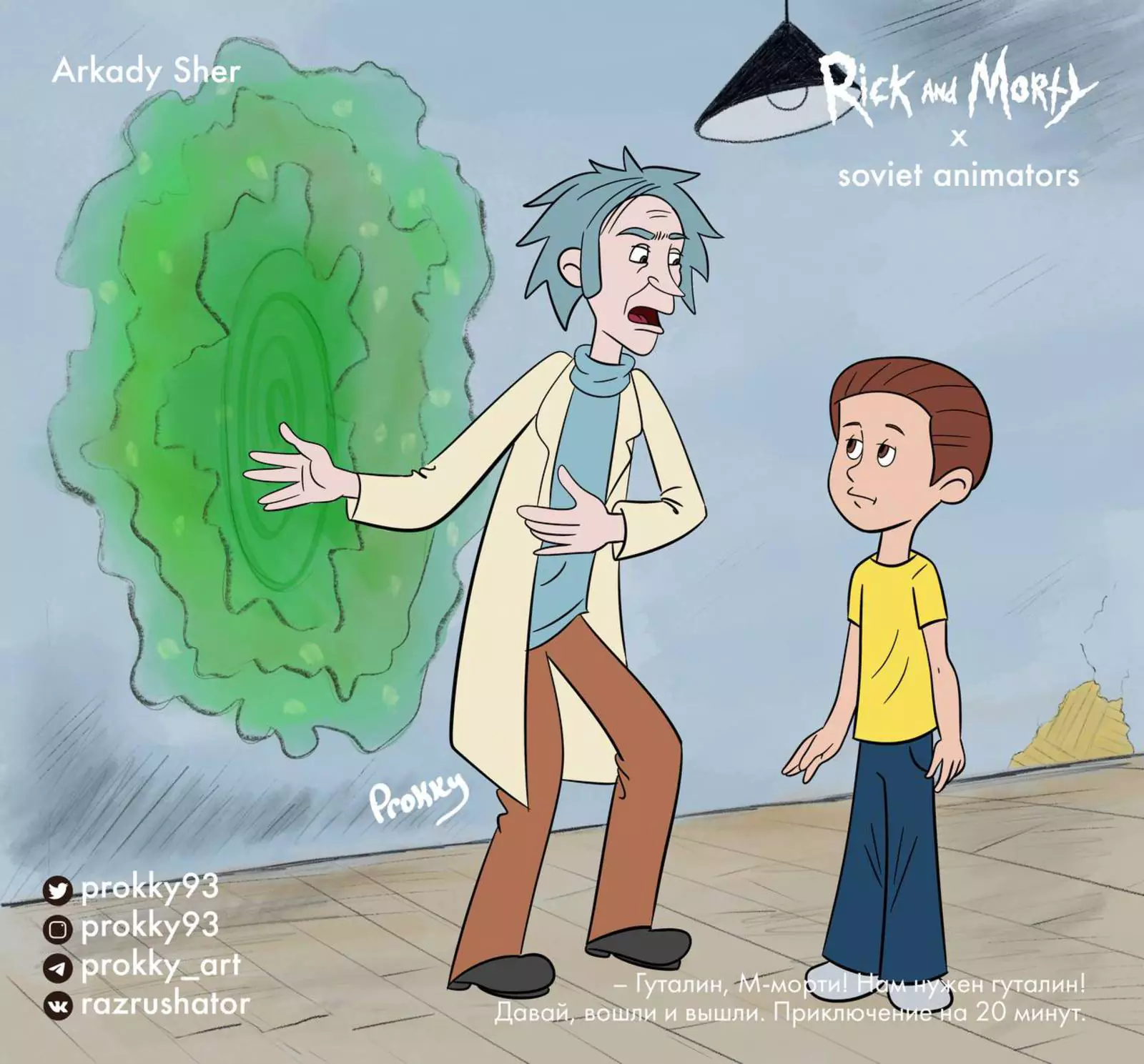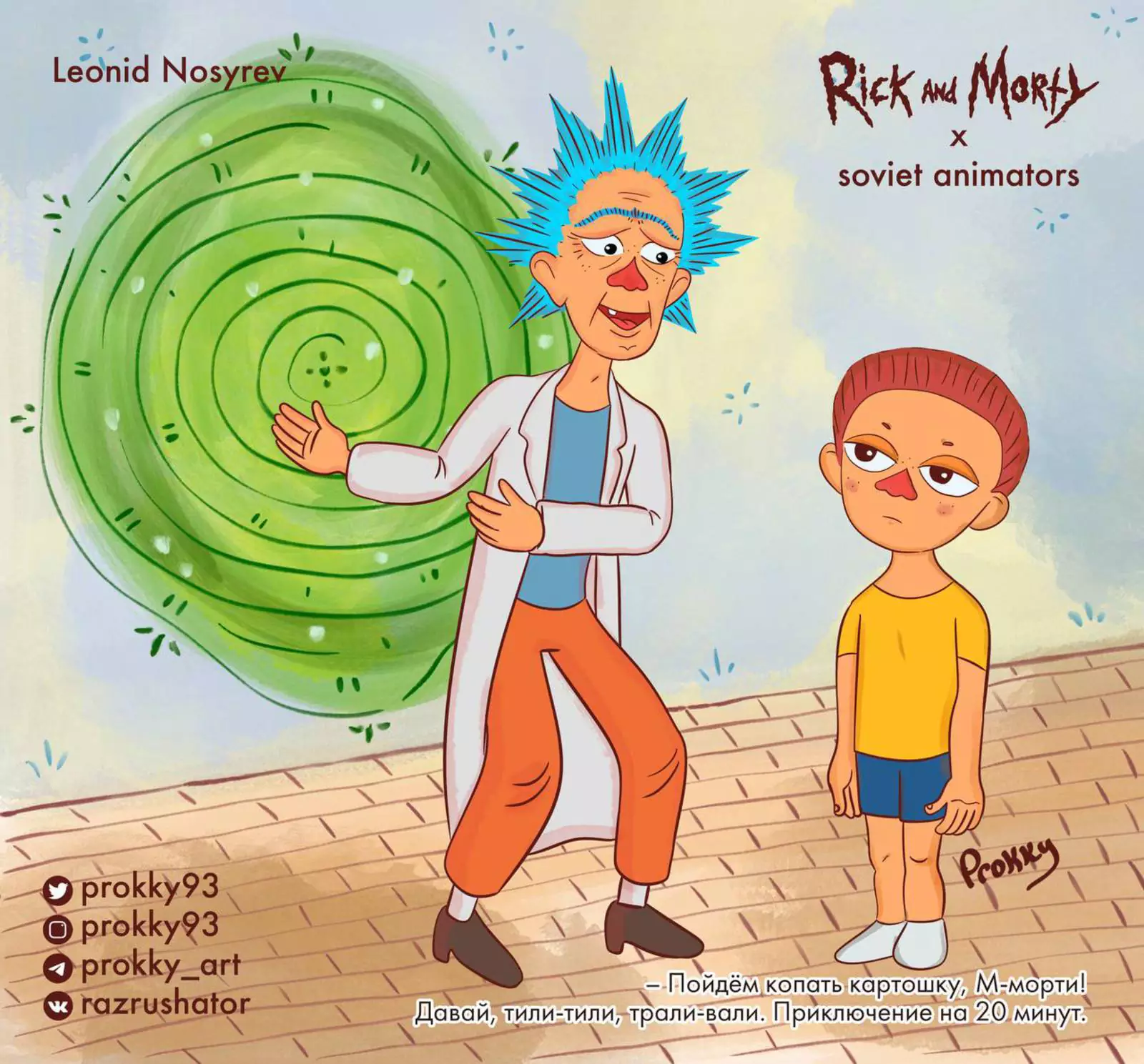 К выходу нового сезона комедийного научно-фантастического сериала «Рик и Морти» талантливый иллюстратор, известный под ником Prokky93, решил представить, как могли бы выглядеть гениальный дедушка Рик и его недалекий внук Морти, если бы над ними работали советские мультипликаторы. Премьера шестого сезона мультсериала о приключениях Рика и Морти состоялась 4 сентября.