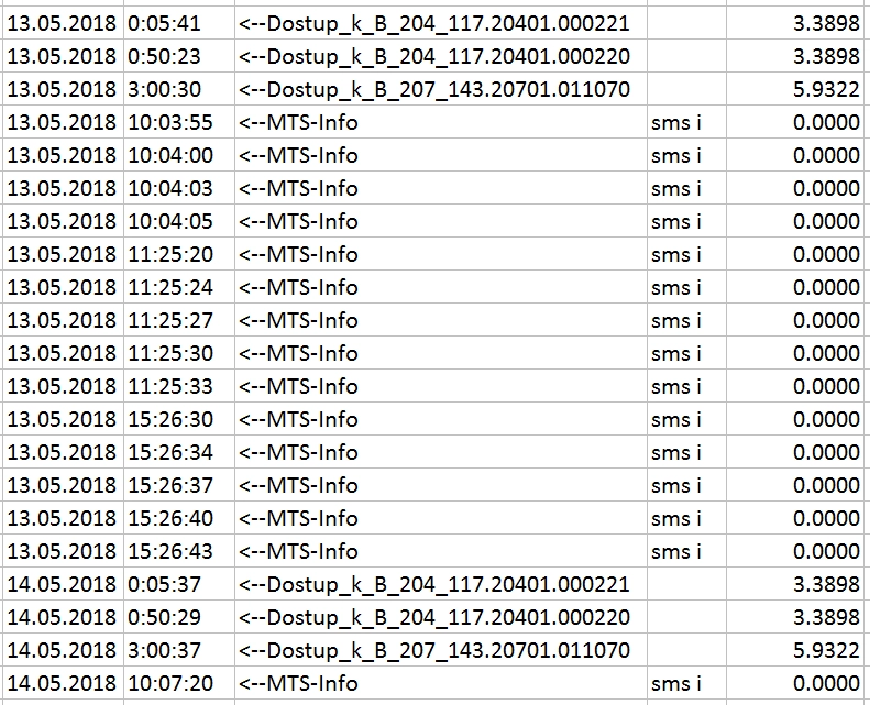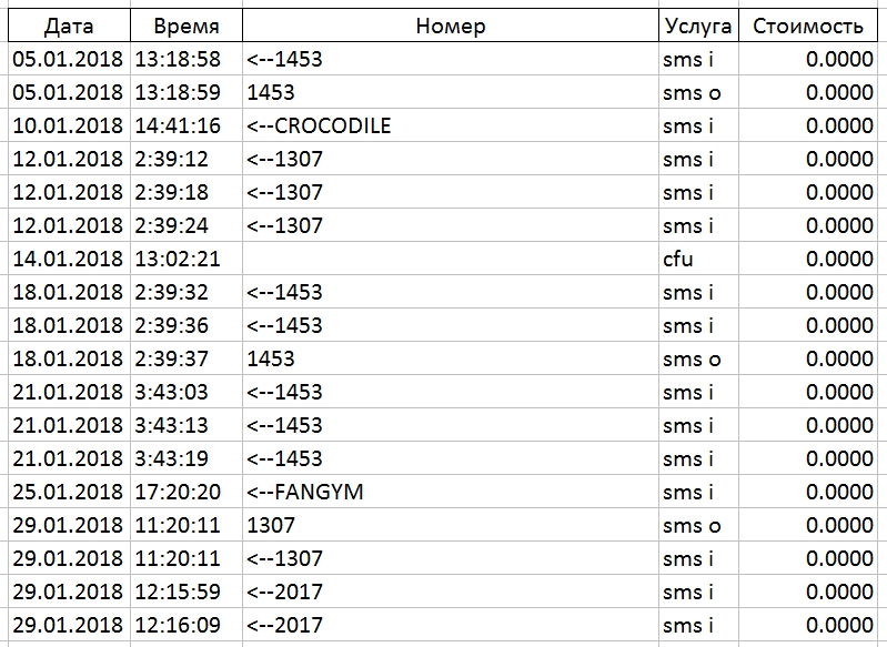 А ещё я вижу в детализации множество _отправленных_ сообщений на короткие номера, которые физически не могли отправляться.