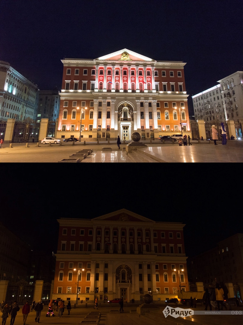 Москва присоединилась к акции в 2009 году. В 2013 году впервые была отключена подсветка Московского Кремля, а также еще более 100 зданий.