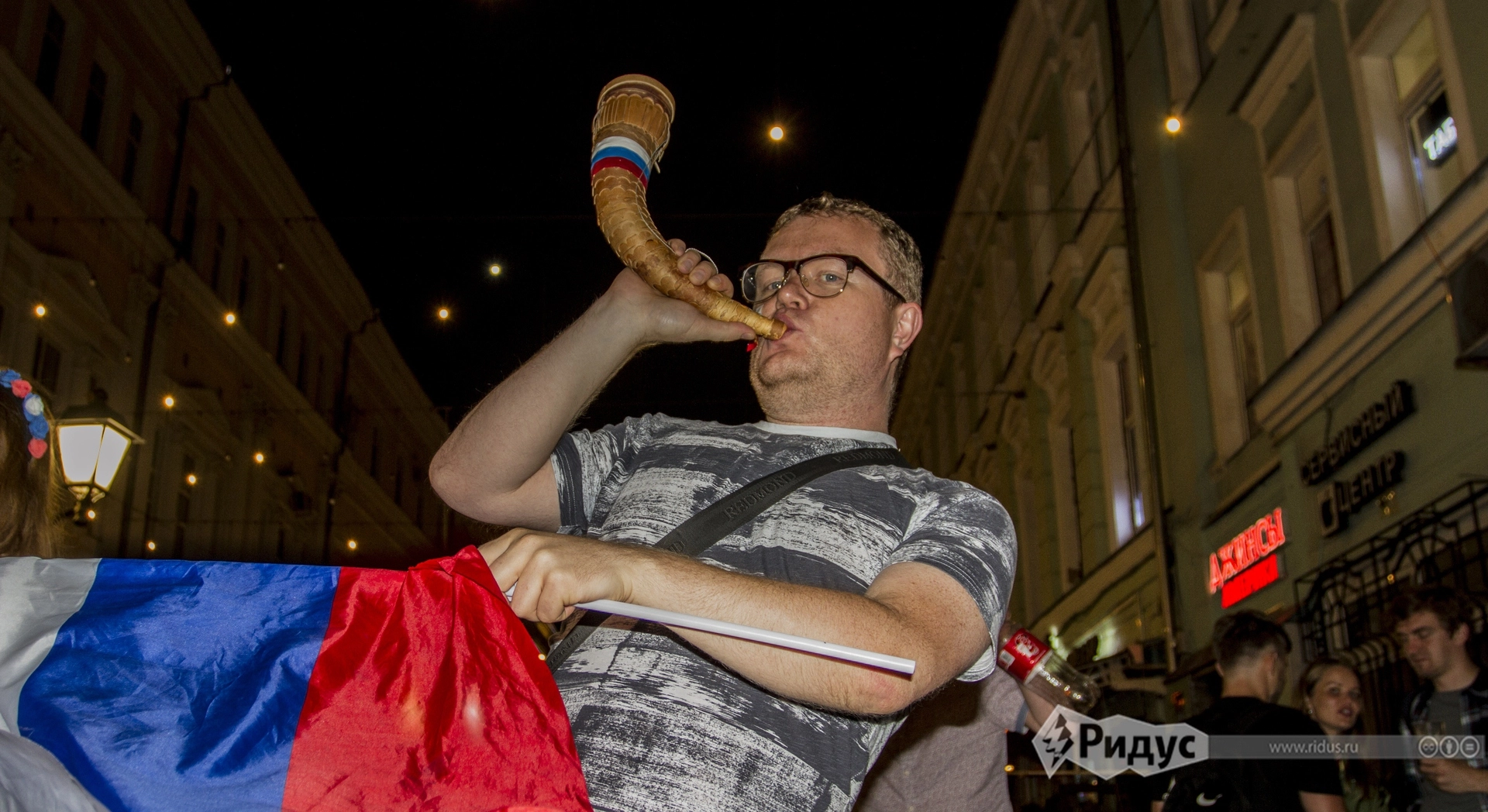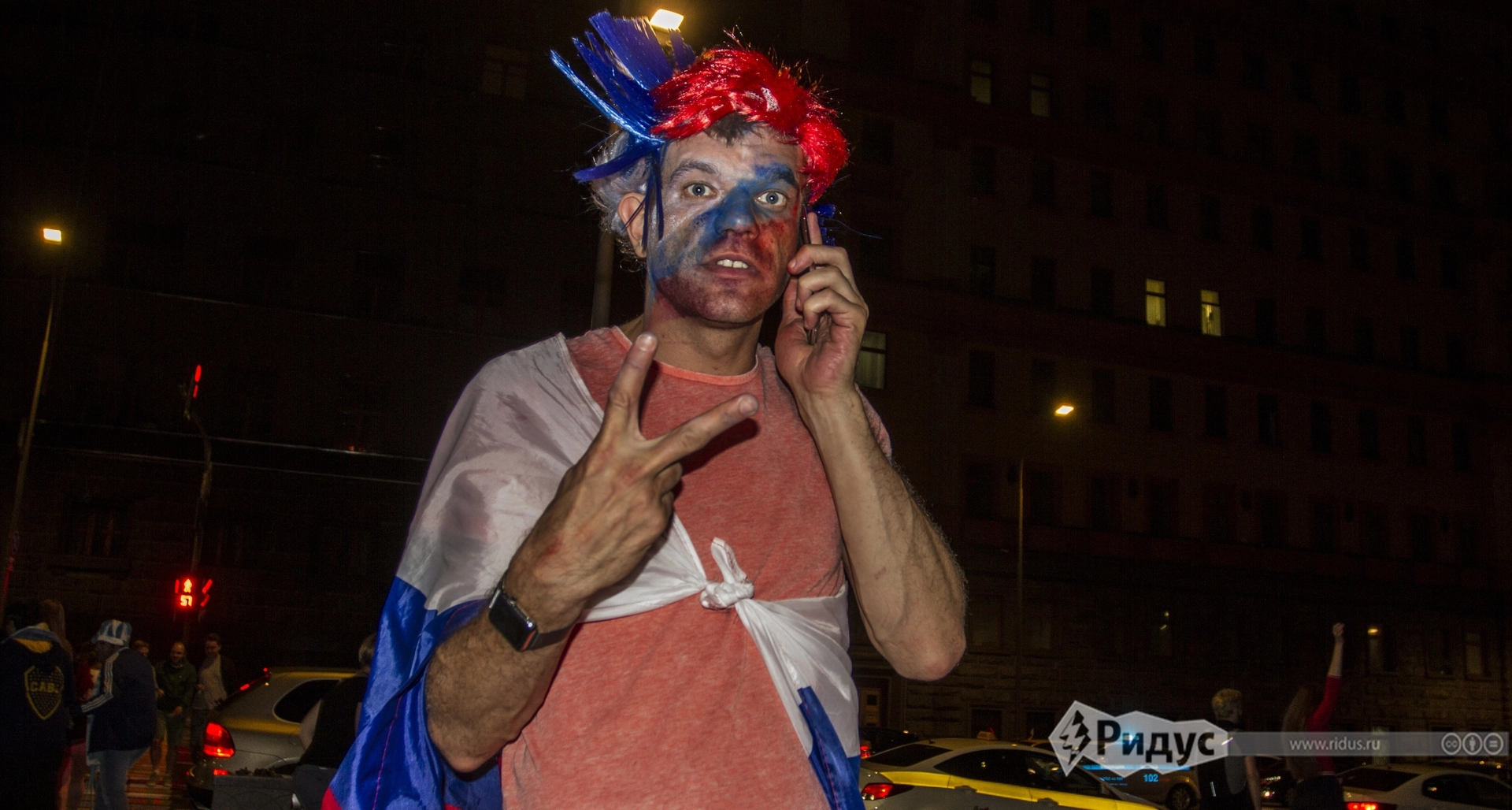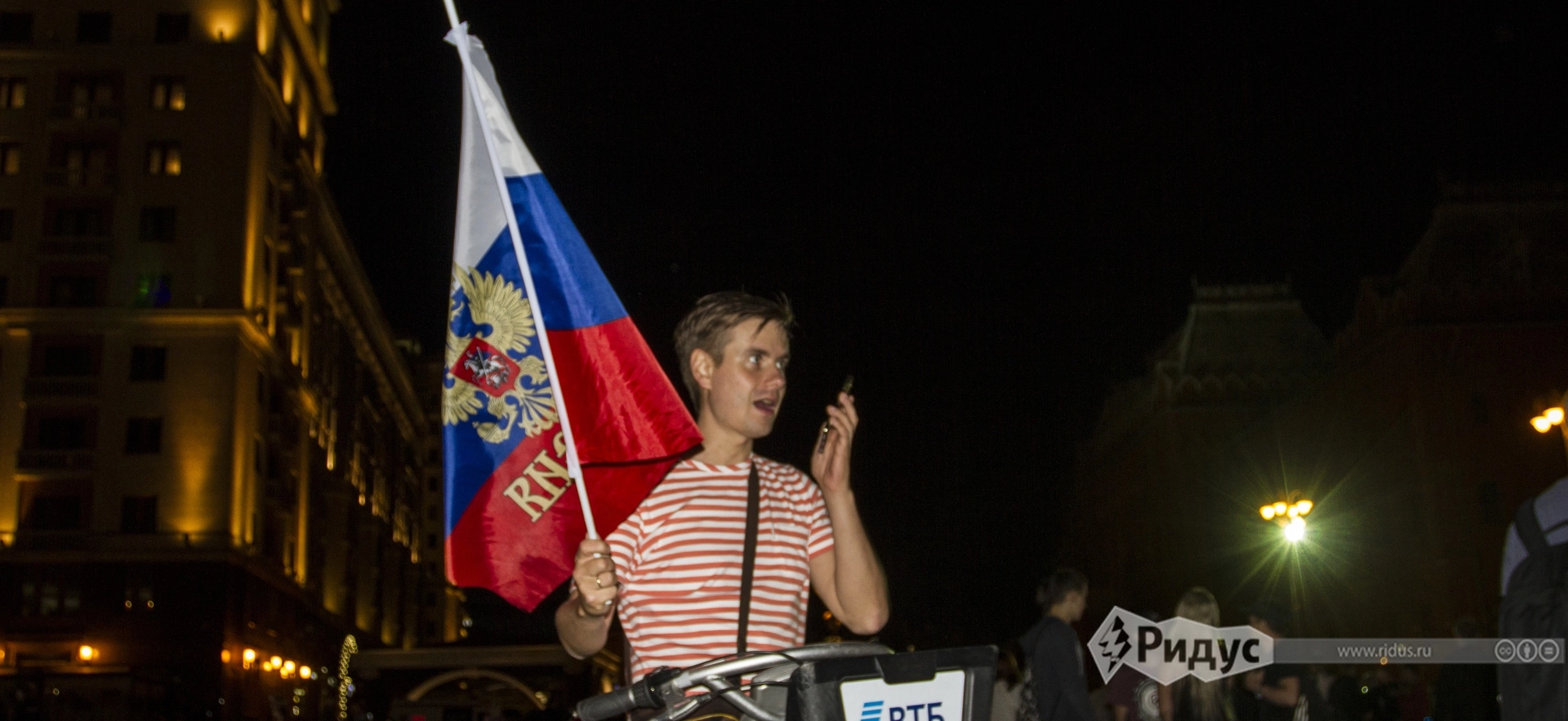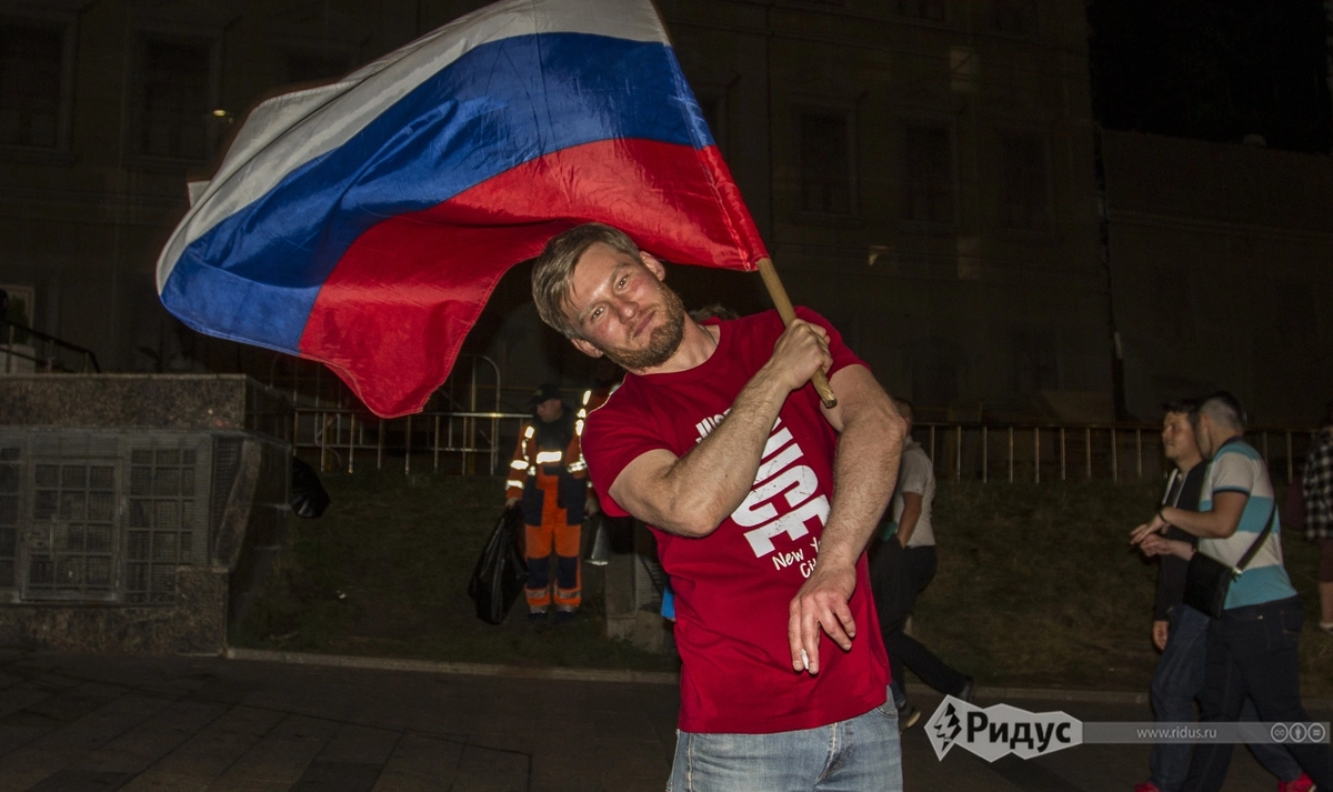 Сотни людей вышли отметить великолепную игру сборной России в ¼ финала чемпионата мира против сборной Хорватии.