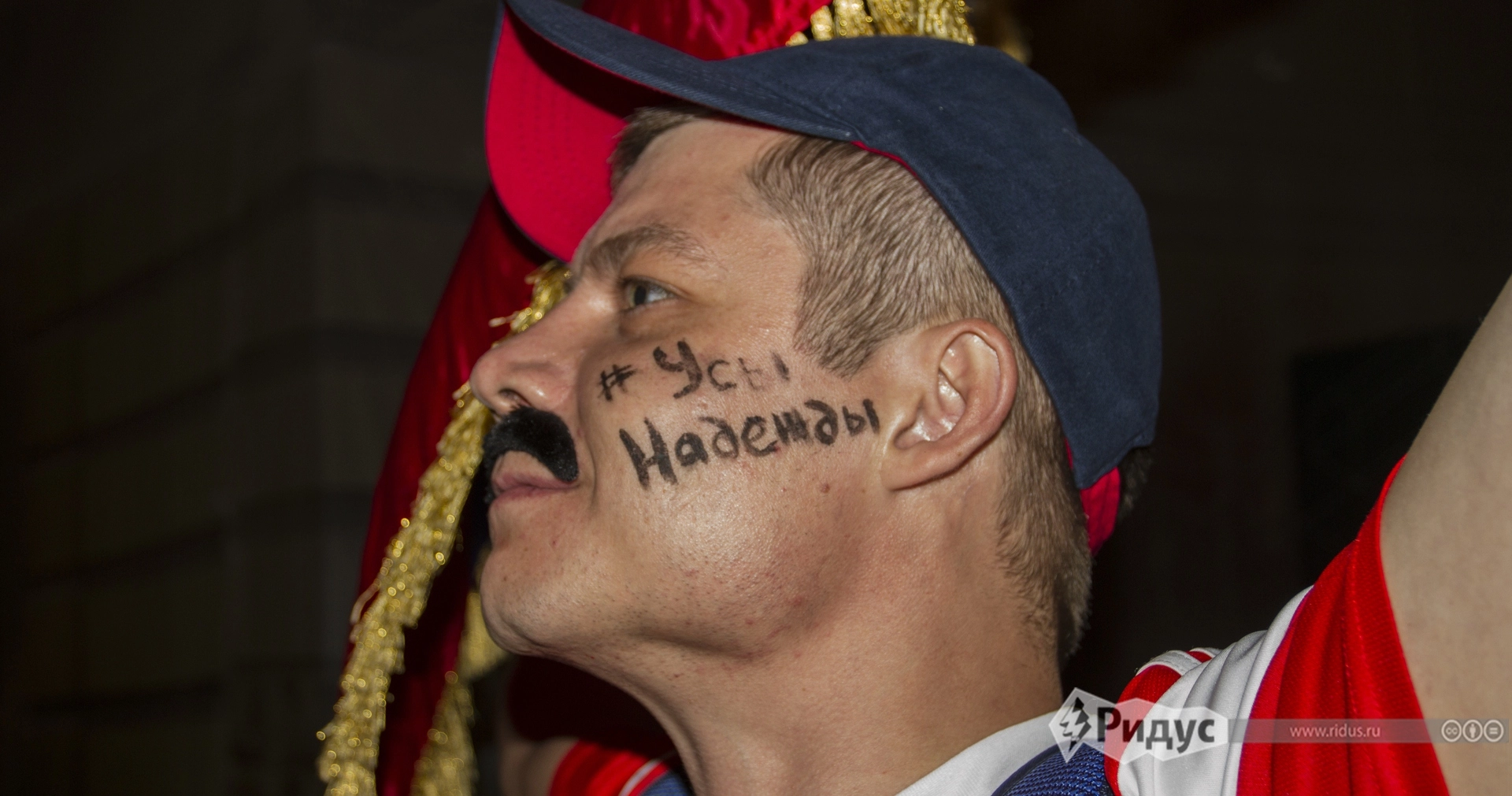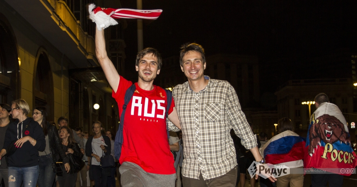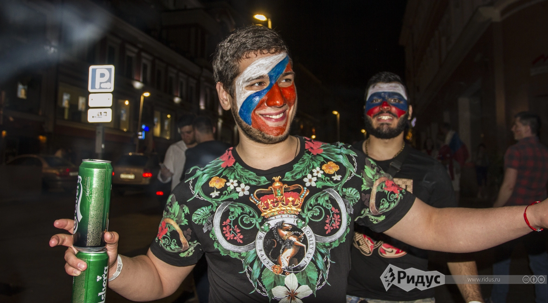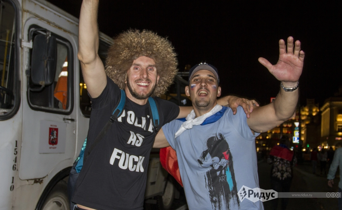 Сотни людей вышли отметить великолепную игру сборной России в ¼ финала чемпионата мира против сборной Хорватии.