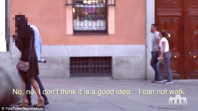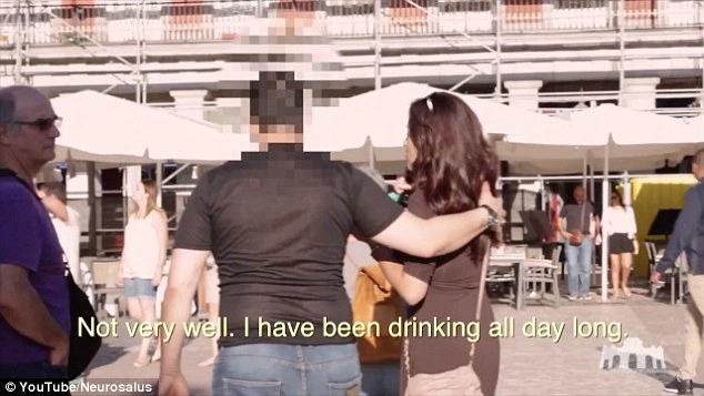 Испанцы решили выяснить, как мужчины реагируют на пьяных женщин. Для этого молодая актриса делала вид, что перебрала с алкоголем и с бутылкой пива в руке обращалась за «помощью» к проходящим мимо мужчинам. Она сообщала, что потерялась в городе, ее телефон разряжен и поэтому она не может дозвониться друзьям.