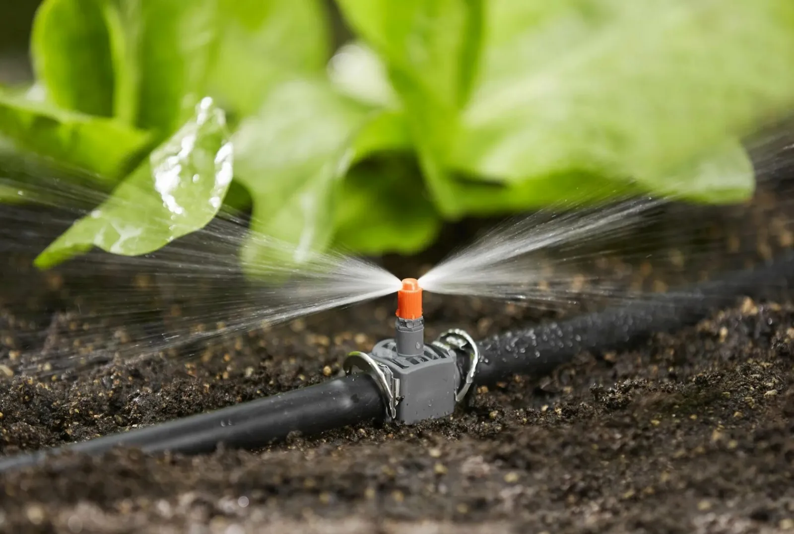 В спринклерной системе дождеватели орошают растения сверху. Преимущество системы — в возможности организовать полив на большой площади с минимальным количеством затрат и следить за ее работой визуально. Недостаток в том, что вода попадает не только на почву, но и на листья растений. Капли образуют на листьях микролинзы, через которые солнечные лучи перегревают растения. В связи с этим эффектом спринклерные системы больше подходят для полива неприхотливых растений — газонной травы или живых изгородей.