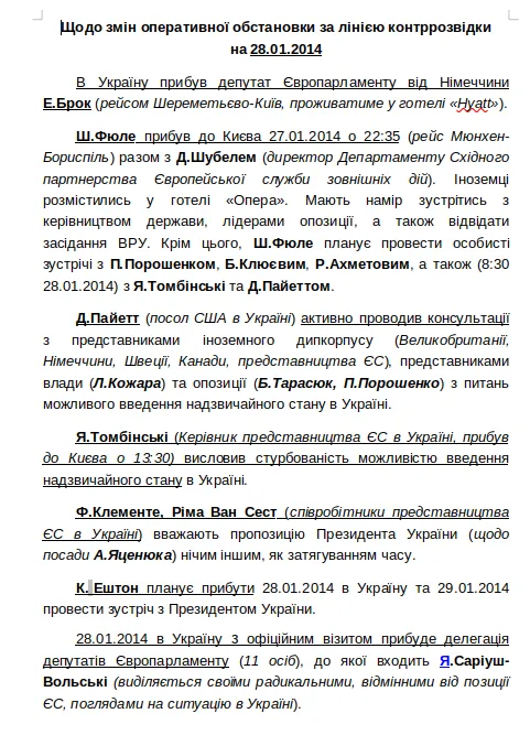 28 января на Украину прибыла делегация депутатов Европарламенту (11 человек), в состав которой входил также Яцек Сариуш-Вольський, известный своими русофобскими взглядами.