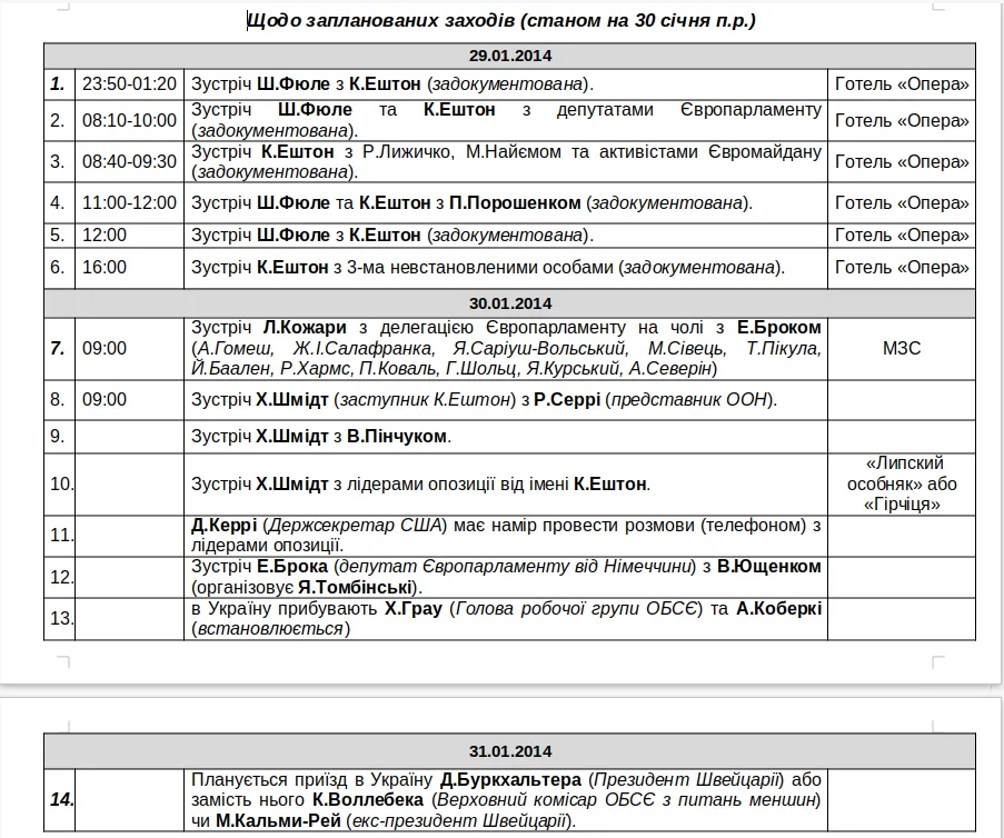 28 января в Киев вновь прибыл Ян Томбински (руководитель представительства ЕС в Украине). Этот представитель провел ряд встреч с представителями властей Украины, а потом — с оппозицией.