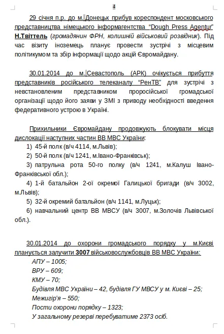 29 января в Донецк прибыл корреспондент московского представительства немецкого информагенства «Dough Press Agentur» Н.Твиттель (гражданин ФРГ, бывший военный разведчик), который запланировал провести встречи с местным политикумом и сбор информации в отношении акций Евромайдана.