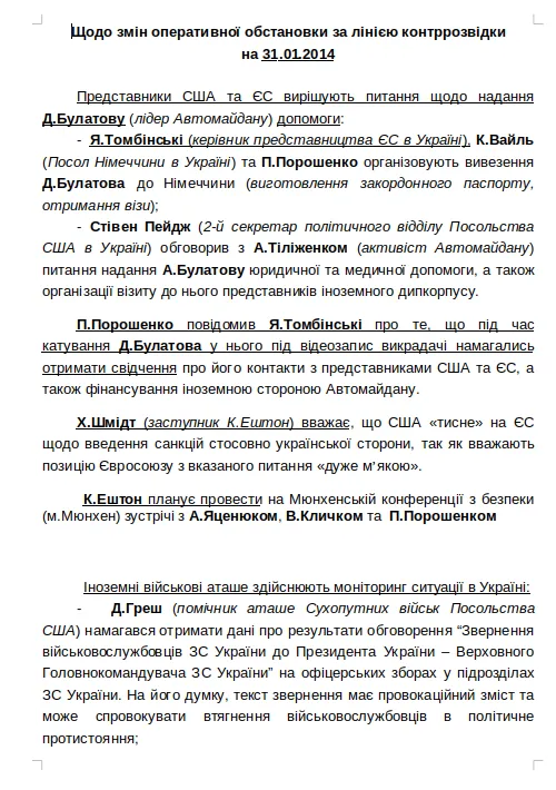 — Стивен Пейдж (2-й секретарь политического отдела Посольства США в Украине, кстати — кадровый сотрудник ЦРУ) обсуждал с А.Тилиженко (один из лидеров Автомайдана) вопрос оказания А.Булатову юридической и медицинской помощи, а также организации визита к нему представителей иностранного дипкорпуса.