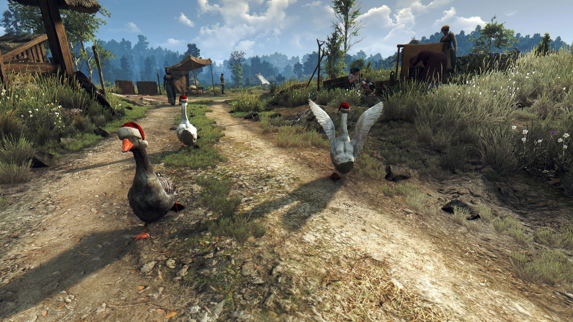 К праздникам креатив поклонников взлетел до небес. Новый мод «Ведьмака 3» наполняет мир бегающими в рождественских шапках гусями. Может быть, все вместе они — тайный Санта?..