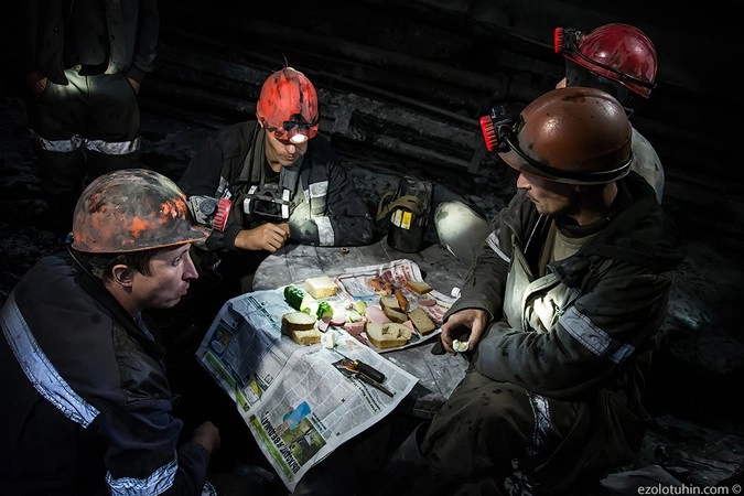 Ради того, чтобы в ваших домах горел свет, шахтеры порой проводят под землей по восемь часов в день, обедают они там же.