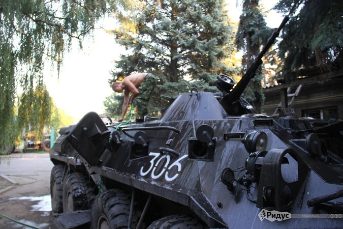 С этим и другими всевозможными проявлениями былой вольницы старательно борется правительство народных республик. Людям в форме не продают спиртное в кафе, были инциденты со стрельбой. Патрули на дорогах тормозят военный транспорт и предупреждают, что максимальная разрешенная скорость на дорогах в комендантский час — 40 км/ч. Различных ограничений — не перечесть. Теперь еще и грандиозные масштабные смотры, один из которых проходил как раз во время нашего визита в Горловку. Ждали Захарченко, и группы бойцов гоняли на полигон по нескольку раз в сутки. Ополчение ДНР все больше напоминает настоящую армию, разве что строевой подготовки пока нет.