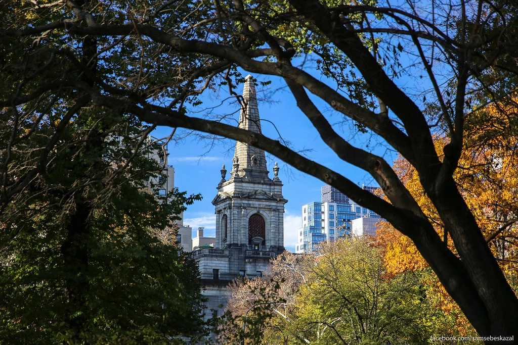 4. Башня жилого небоскреба 432 Парк-авеню, именуемого в народе Миддл-фингер-билдинг. По фото думаю, понятно почему его так называют. На календаре было 21 ноября, но большинство деревьев в парке еще зеленые.