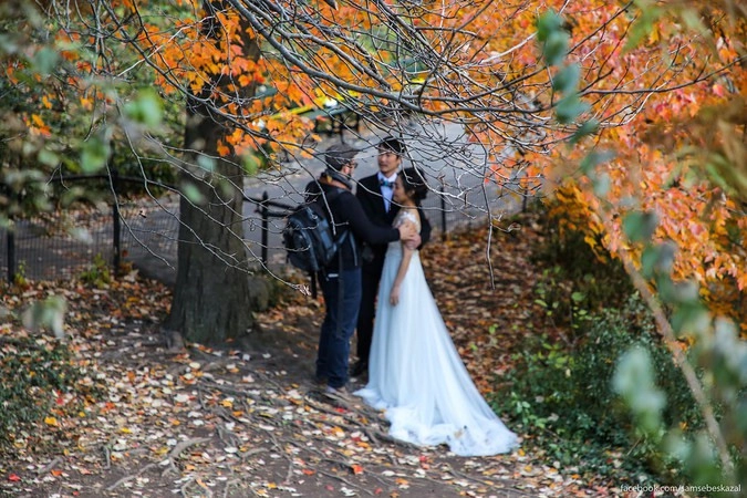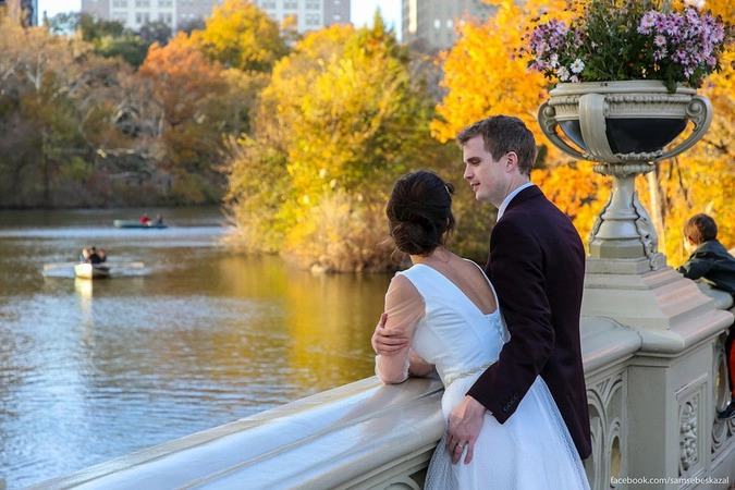 20. Молодожены фотографируются на мосту Боу-бридж.