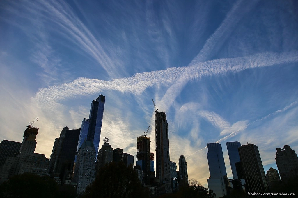 25. Небо в полосочку и растущая ввысь застройка Мидтауна Манхэттна.