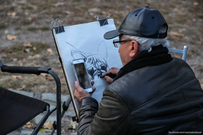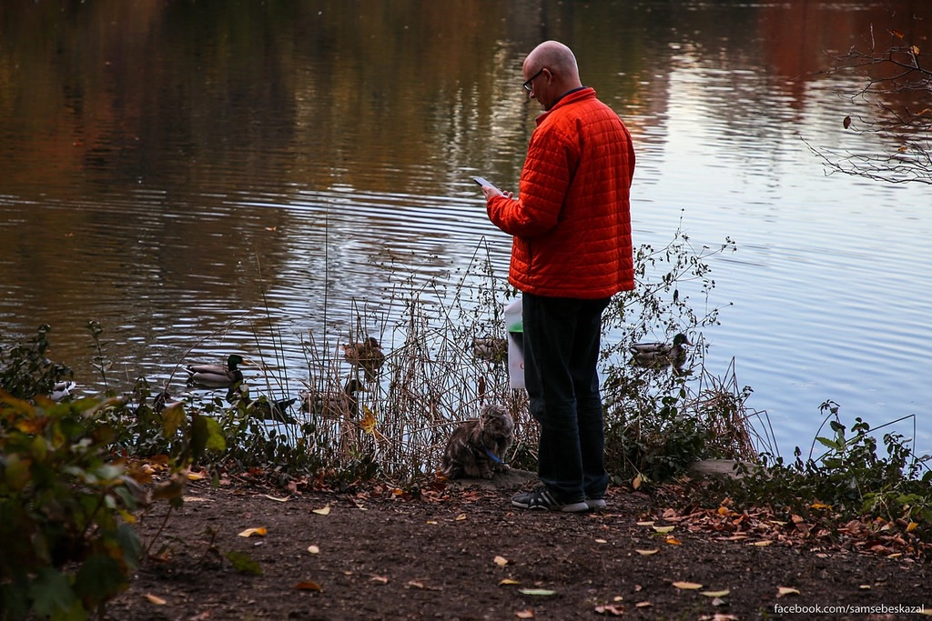 31. Мужик выгуливает кота на поводке. Кот оказался непростой. С коротким хвостом и необычными ушами. Похож на маленькую рысь, но кот. Я таких вообще раньше не видел.