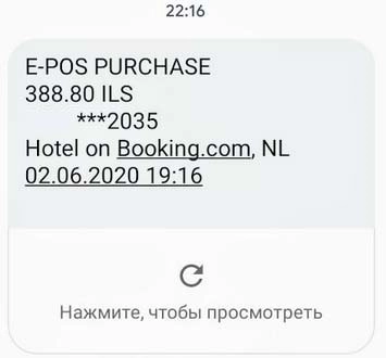 Вот СМСка о том, что деньги снялись с карточки —