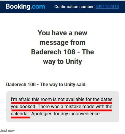У меня и мысли не было, что могут возникнуть проблемы. Если бы я не позвонил в гостиницу, чтобы уточнить как туда добраться — даже бы и не узнал, что они мне аннулировали бронь. Но деньги при этом от меня получили.