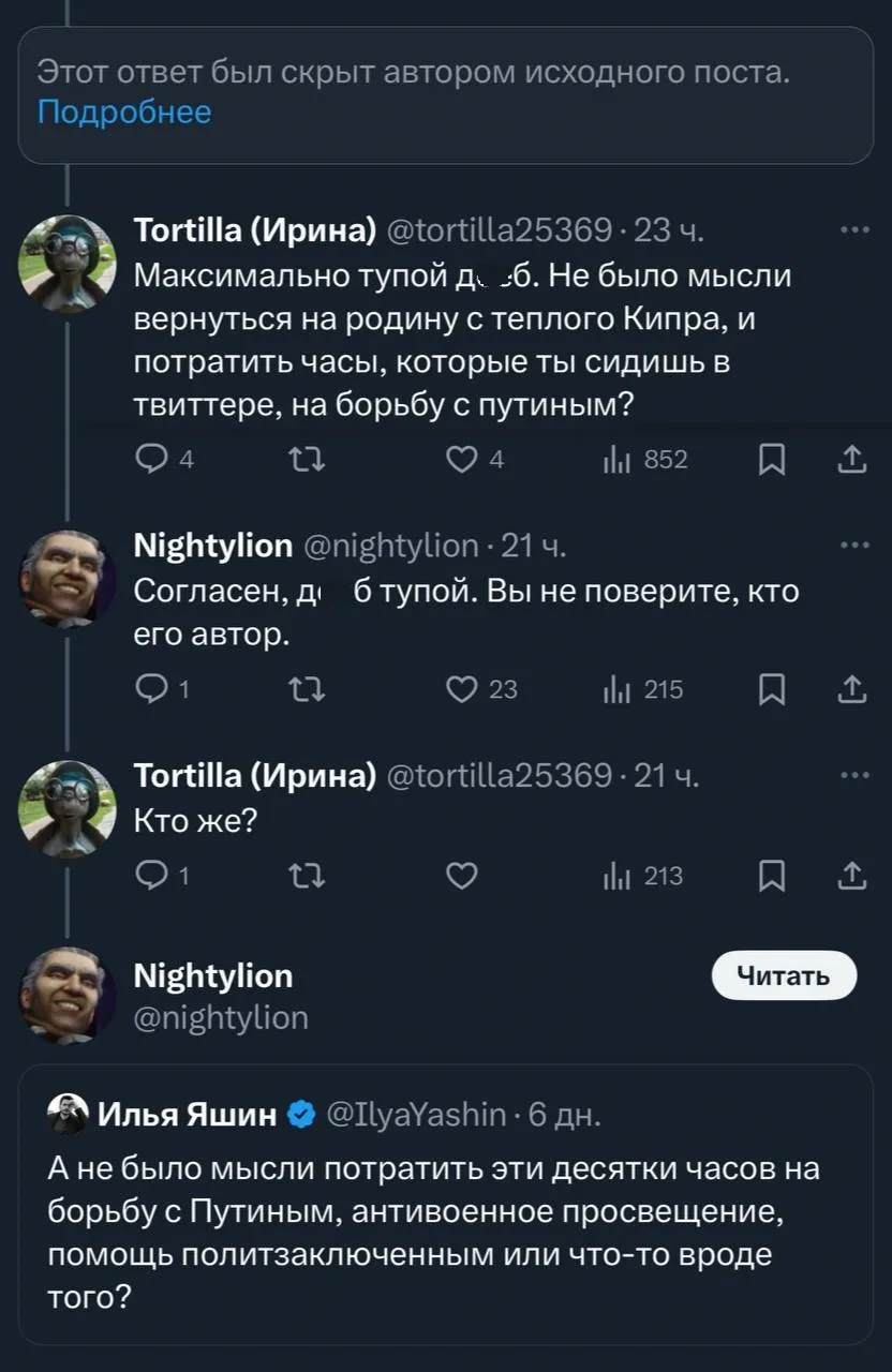 Таким образом Яшин* в моменте остался в дураках, даже не получив карты на руки. Пользователи соцсети ритуально посмеялись над ним, однако это был только пролог настоящего политического анекдота. Наверняка данная история в будущем войдёт в специализированные учебники современной истории.