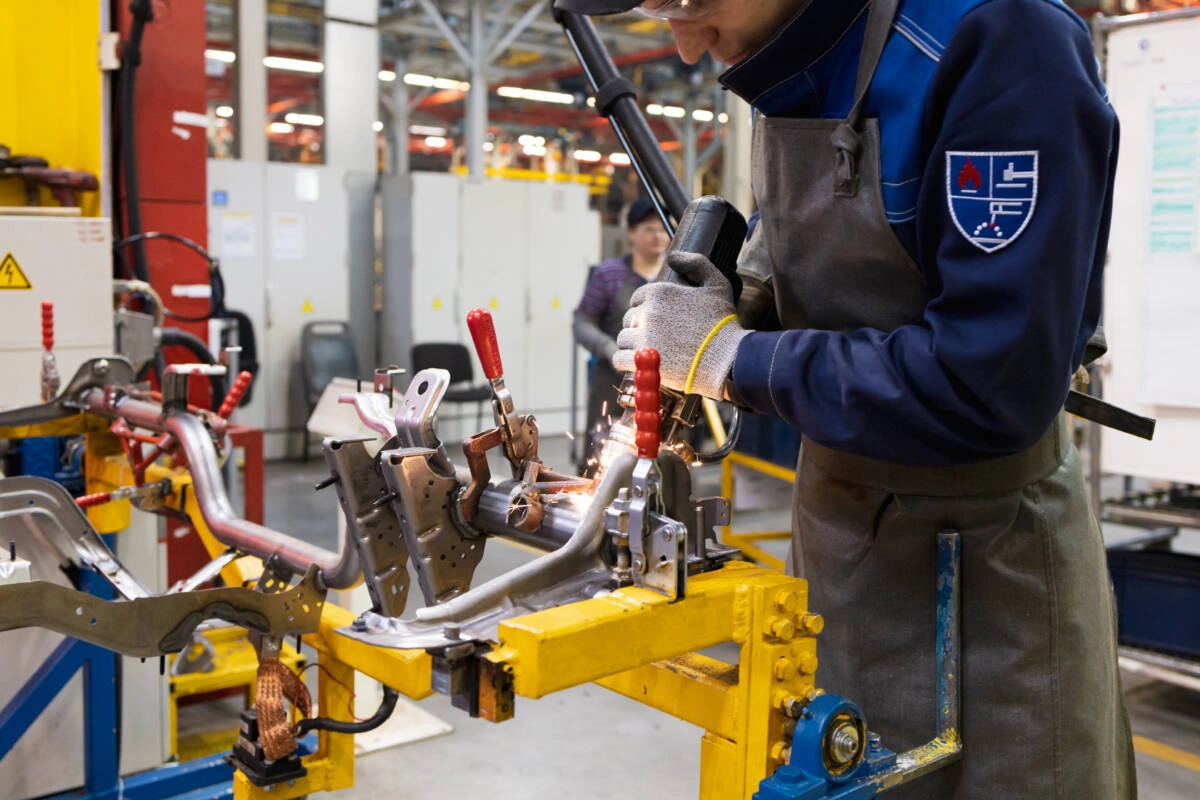 Роботы напрямую связаны с будущей геометрией кузова, поэтому для установки каждого элемента используется кондуктор. Вначале срабатывают зажимы, которые задают правильную геометрию, только после этого начинается сварка.