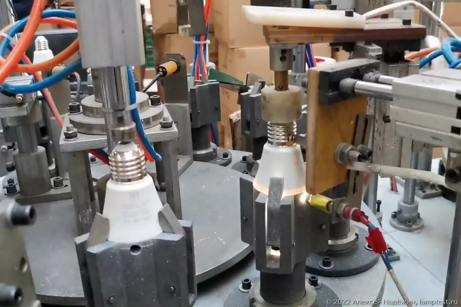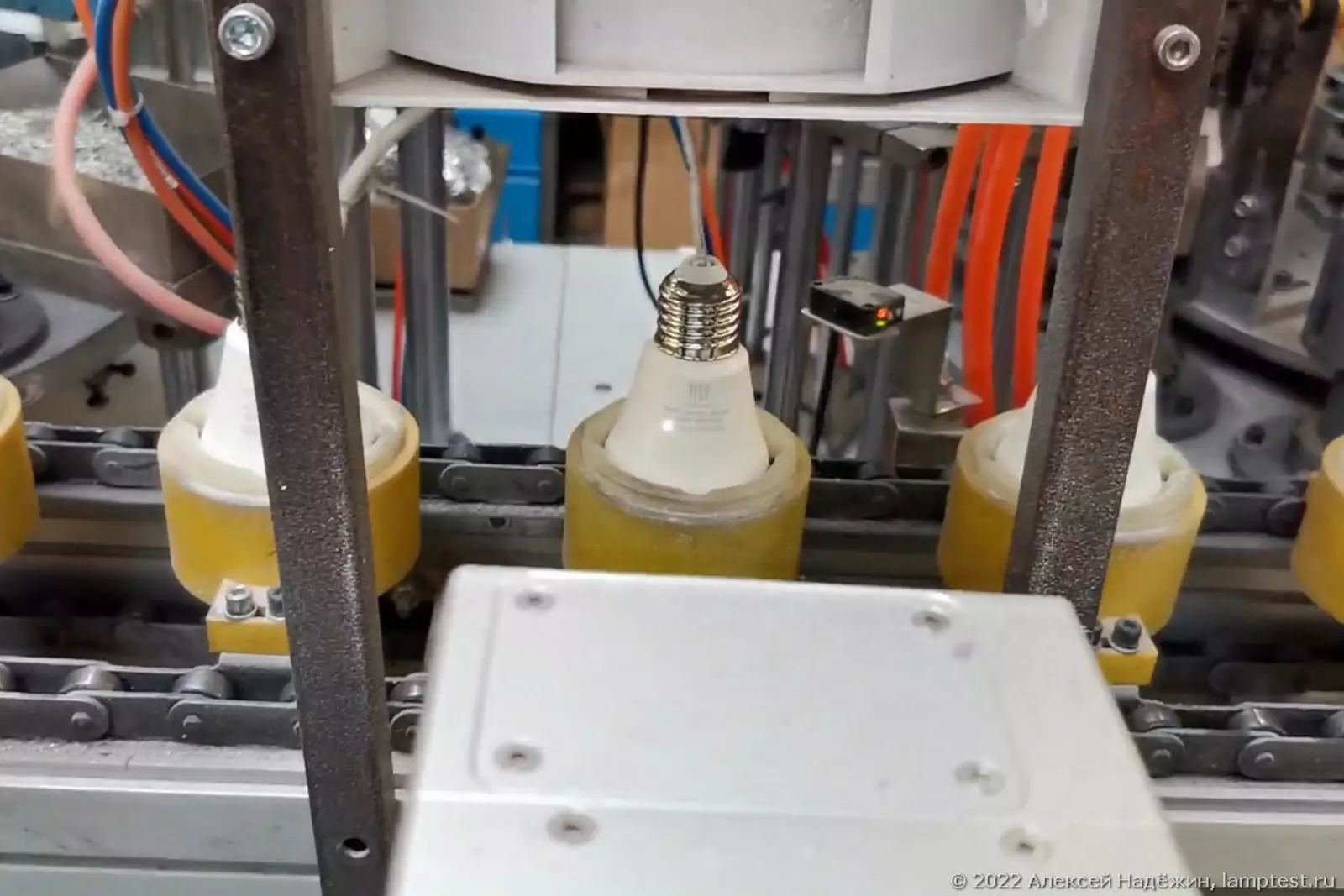После установки цоколя прямо на конвейере лампа включается, и если она не засветилась — отбраковывается.