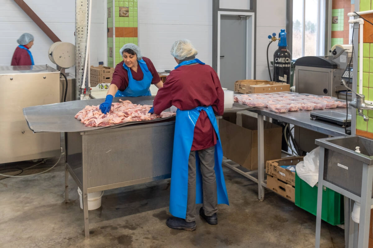 Забойный цех расположился в бывшем коровнике, по понятным причинам, туда мы попасть не смогли. Все остальные здания предприятия были построены с нуля и сейчас оснащены хорошим оборудованием. На производстве работает свыше 150 человек.