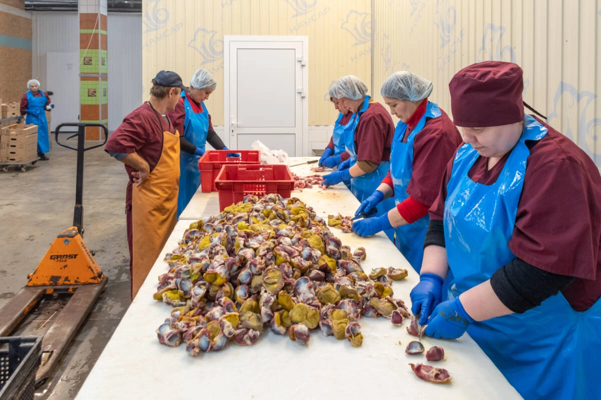 На фабрике СХПК «Каусар» не только забивают и разделывают утку, но и готовят продукцию собственного производства. Чаще всего, в магазинах и супермаркетах её можно встретить под брендом «Рамаевская утка». Мы посетили предприятие, чтобы посмотреть и рассказать вам, как организован производственный процесс.