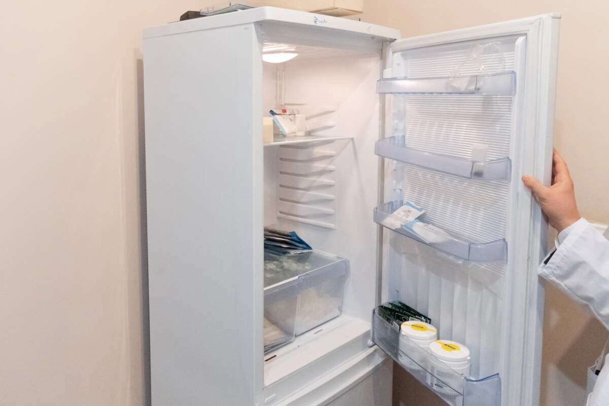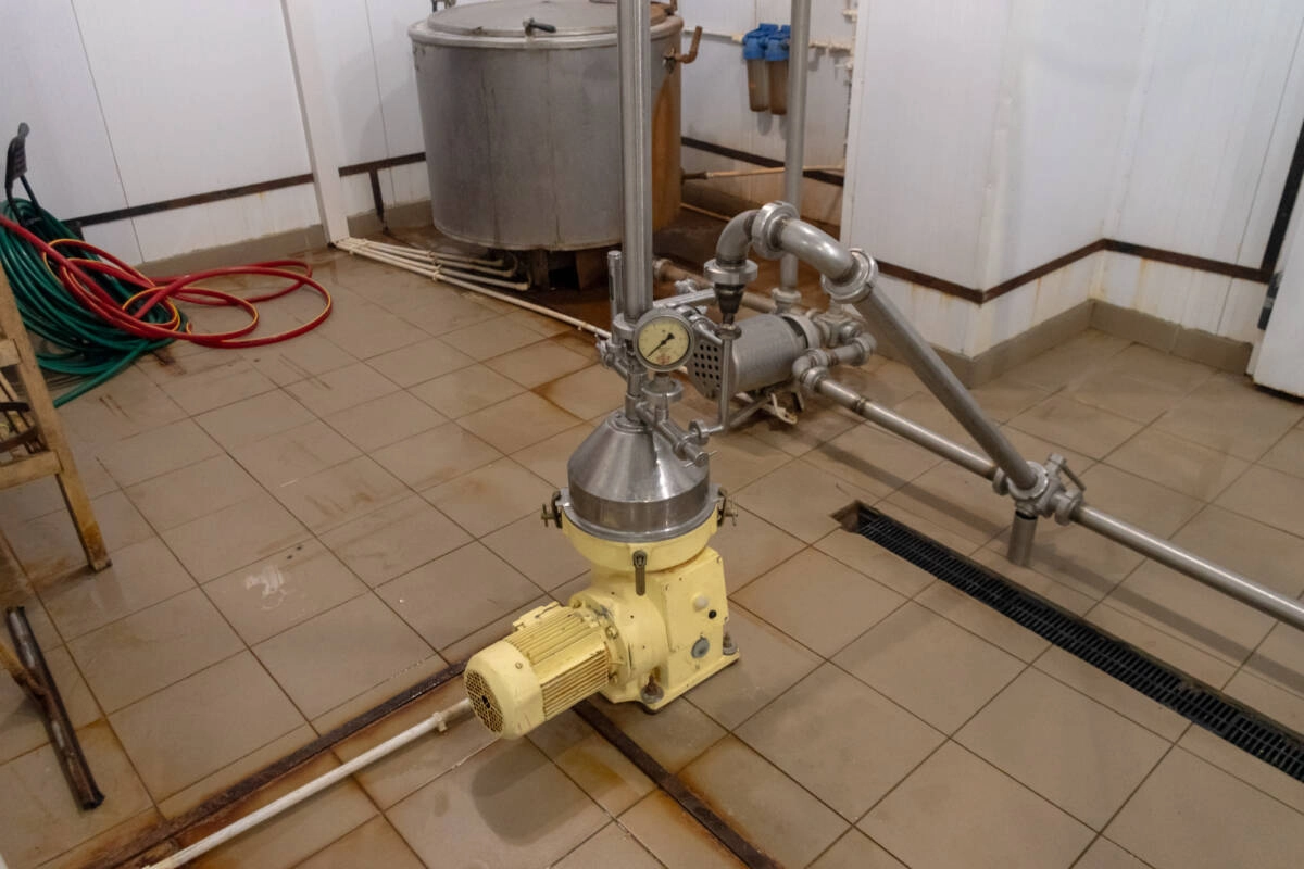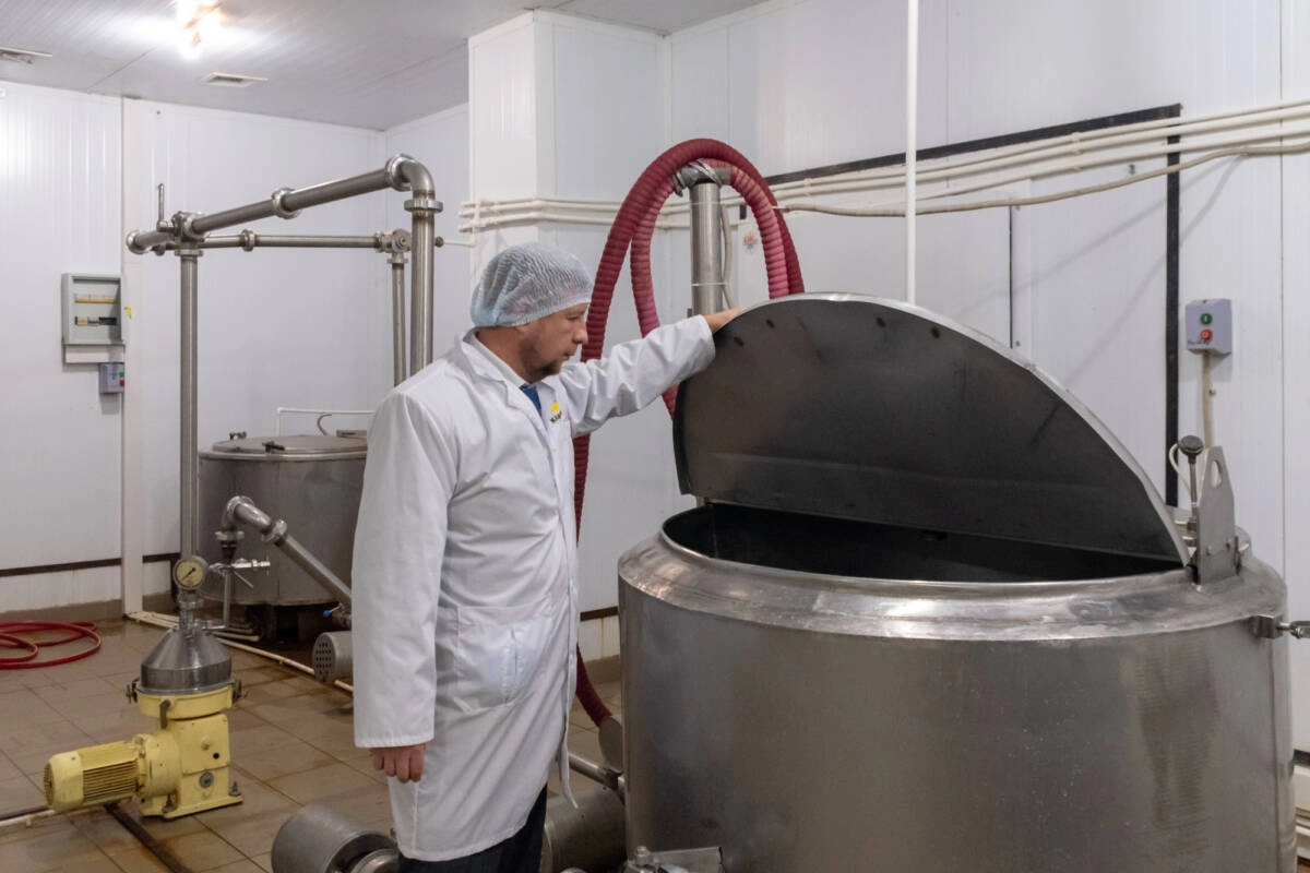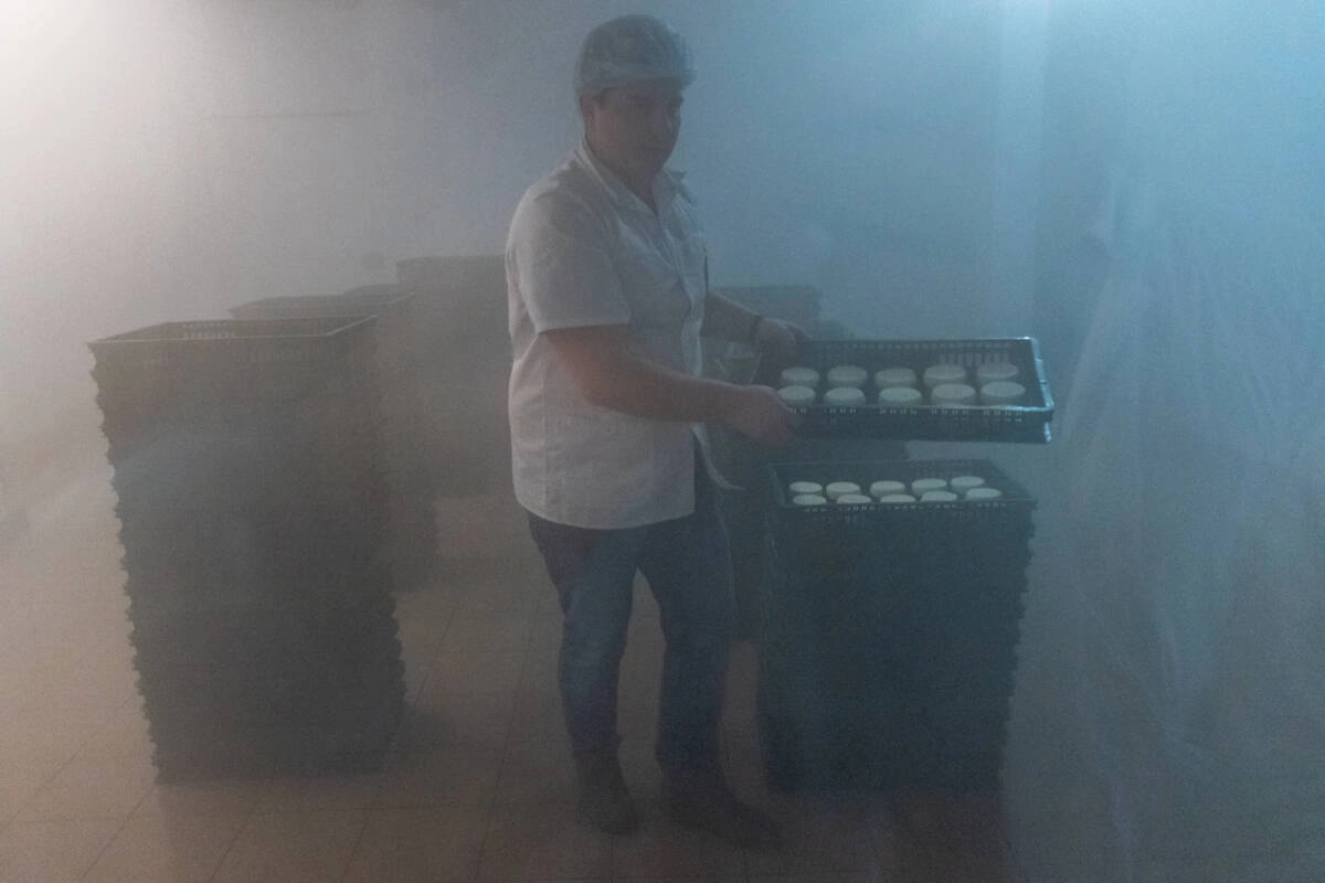 После дойки молоко стоит сутки, проходит проверку в ветеринарной службе, и только затем отправляется на производство, где измеряют его жирность, белок и чистоту. После каждой пробы лаборант сохраняет образец — на случай, если возникнут проблемы с сетями поставки сыра.