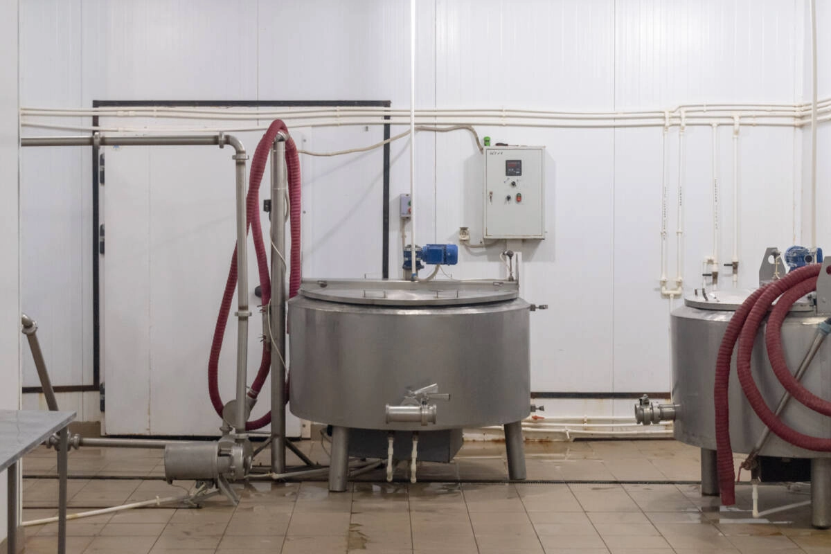 Миновав раздевалки для сотрудников, идем в лабораторию — небольшую комнату, где оценивается качество молока, на основе которого изготавливается сыр.