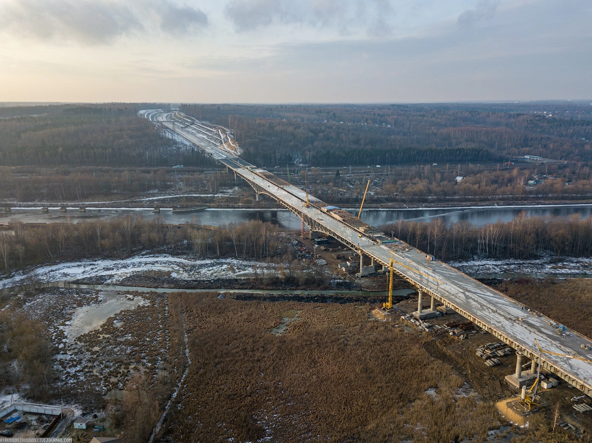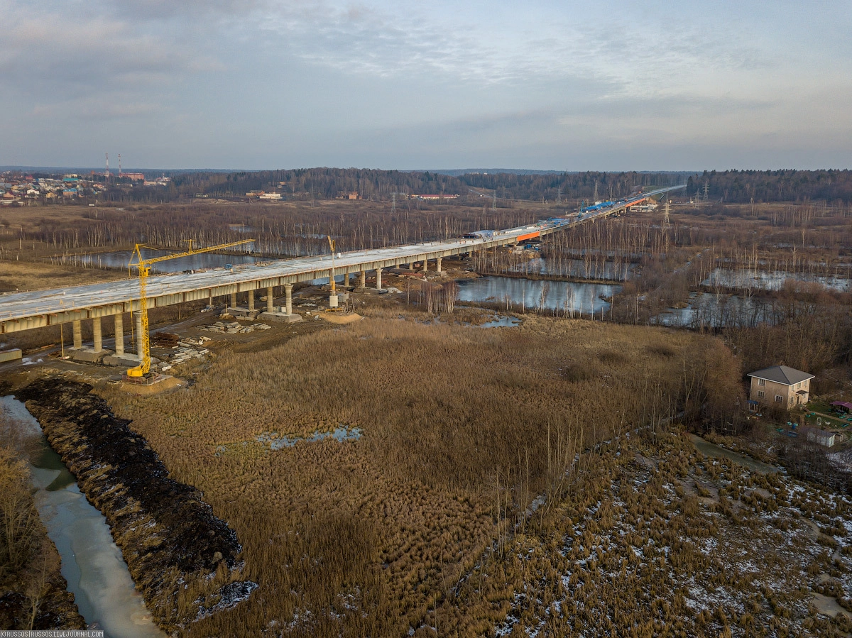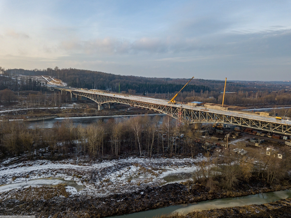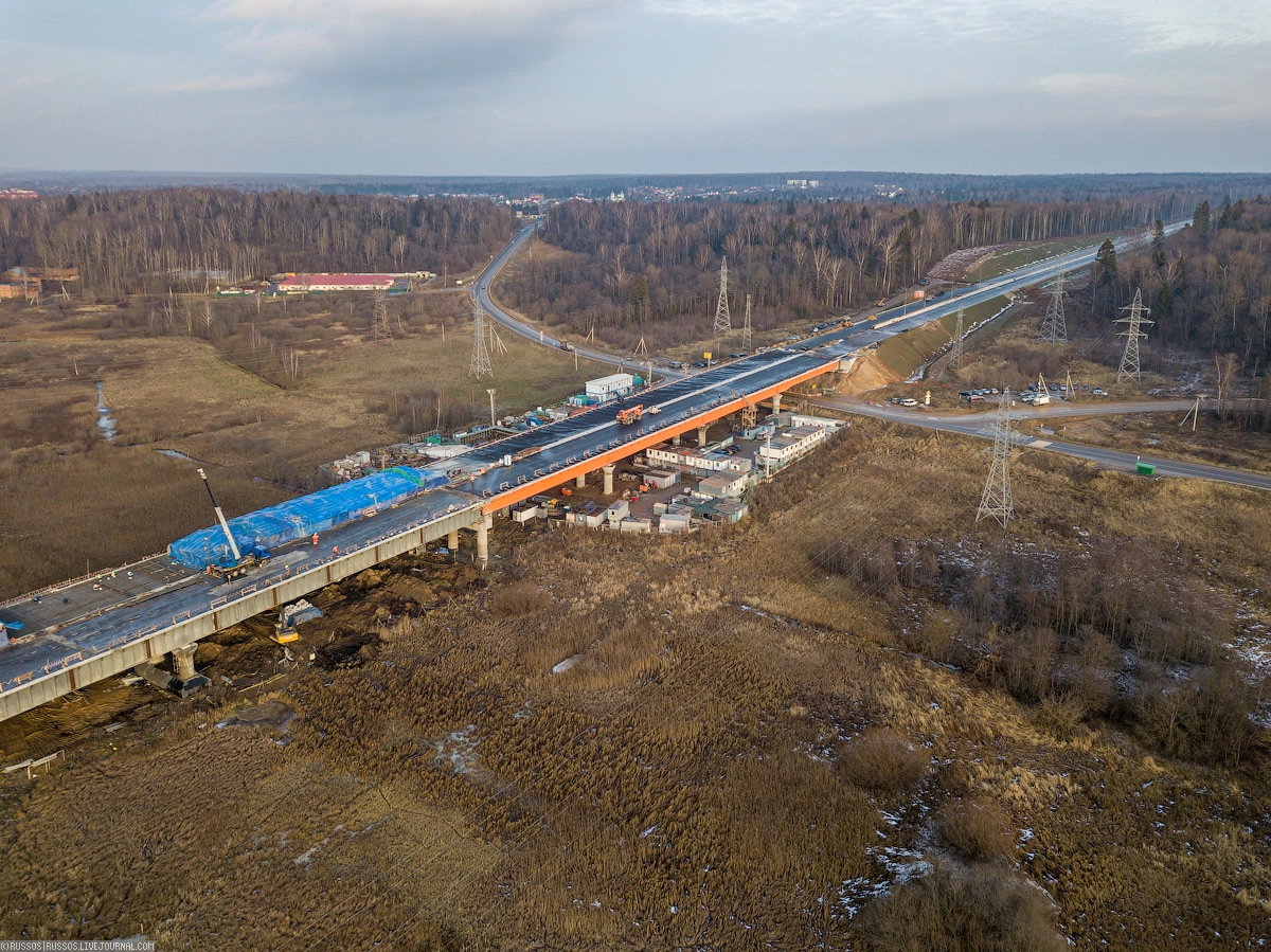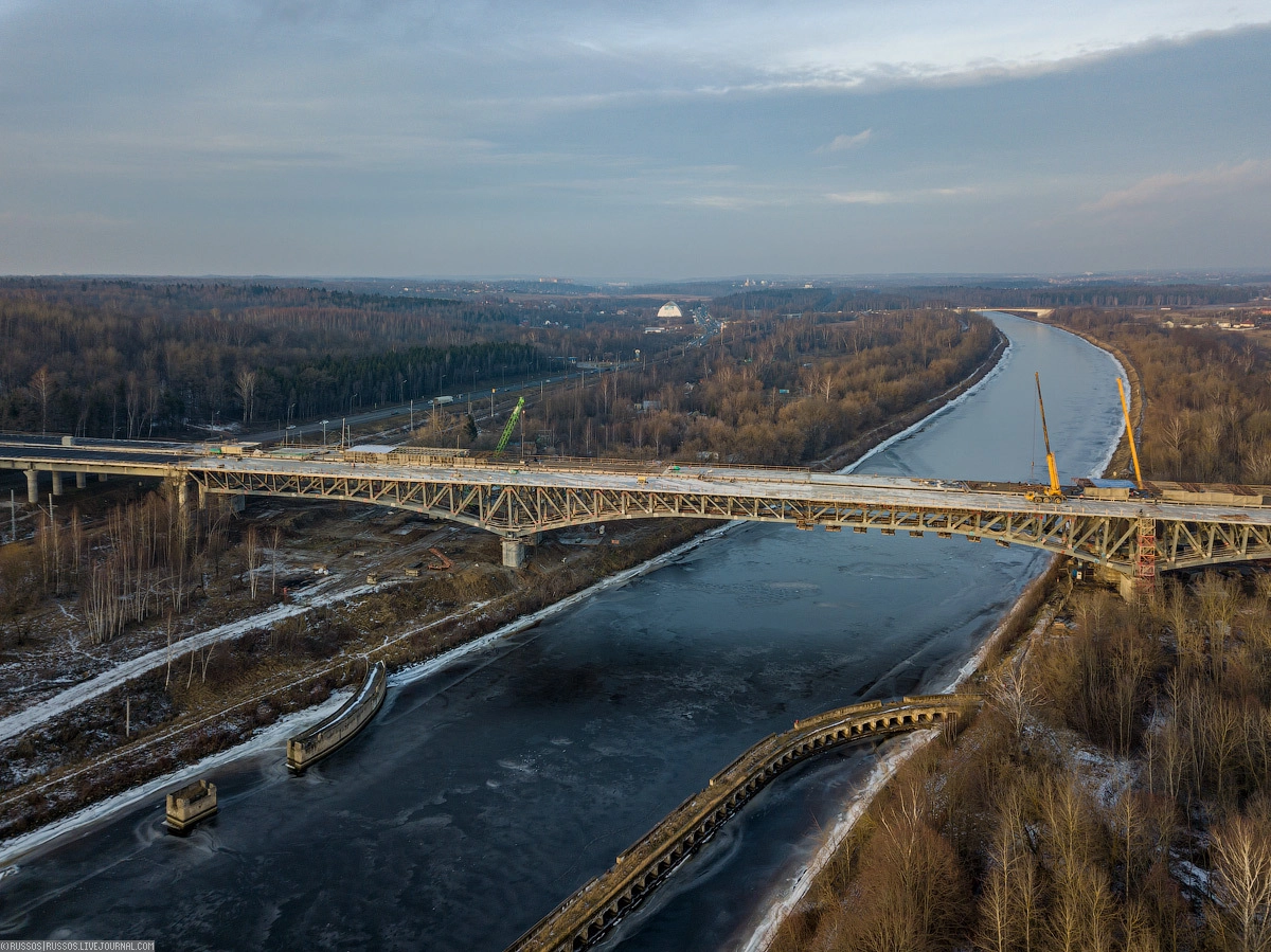 Этот мост — самое серьезное искусственное сооружение на третьем пусковом комплексе ЦКАД. Мост пересекает две автомобильные дороги, одну железную и канал имени Москвы. Мост будет иметь сложный профиль и интересное пролётное строение над каналом.