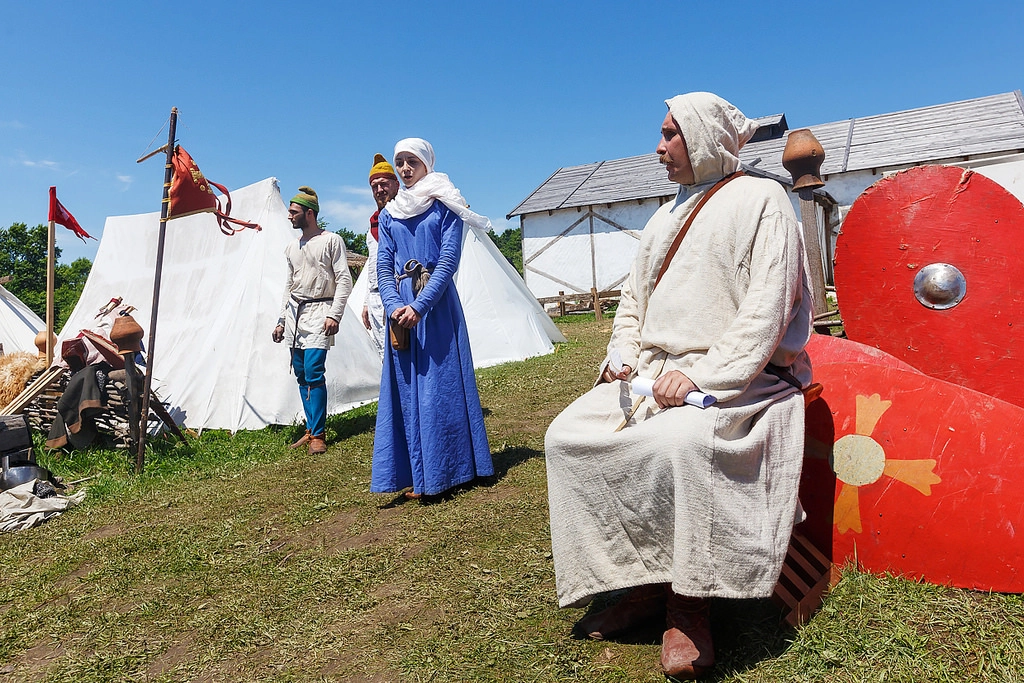 Взрослые и дети одеты, как разные народы в Средние века. Разделение идет по клубам (они называют себя семьями). Стоимость простого на первый взгляд наряда достигает порой несколько десятков тысяч рублей. Оно и понятно – натуральные ткани и материалы, ручная работа и всегда индивидуальные заказы. Увлекающихся реконструкциями немало, и чтобы на фестиваль попали только самые-самые, они должны пройти отбор. Организаторы смотрят фотографии одежды и обуви и предметов быта каждого участника, затем дают или не дают разрешение. Все происходит заранее, чтобы без суеты подготовиться к празднику.