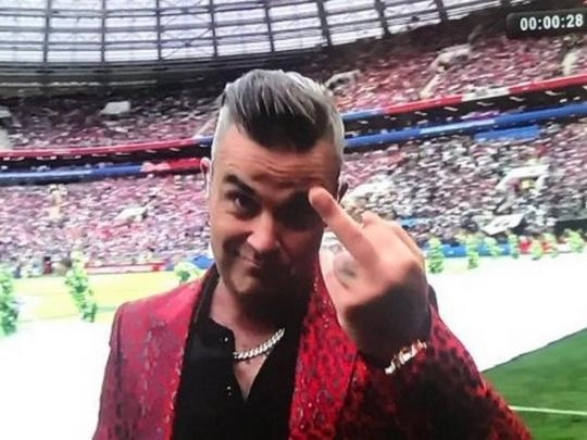 Возможно, данный жест стал ответом на многочисленные публикации в британских СМИ, в которых бывшего участника Take That обвиняли в «продаже души кровавому деспоту» и помощи в разрушении демократии, из-за согласия выступления на церемонии открытия в «Лужниках».