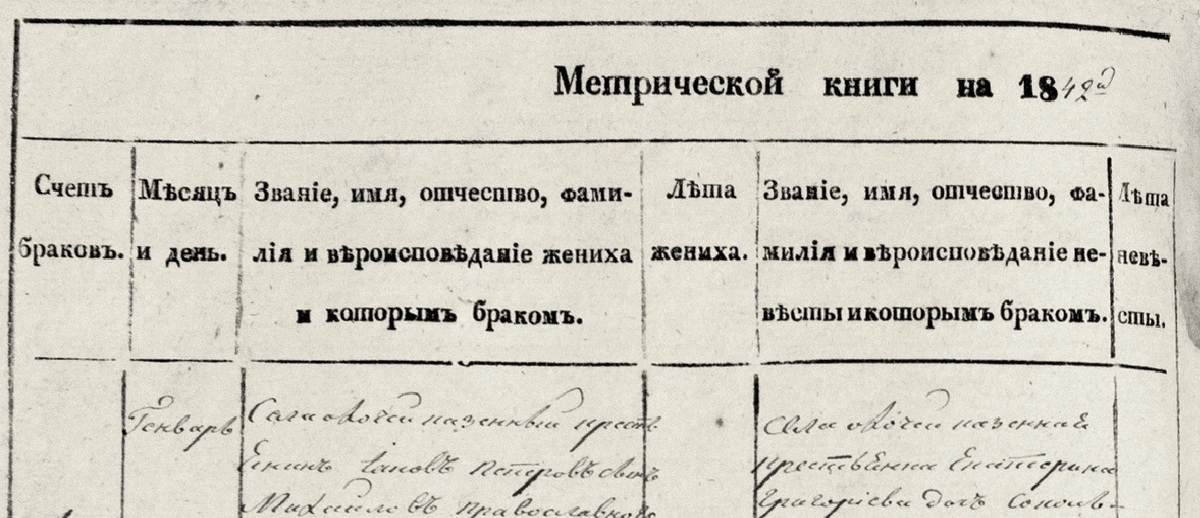 У нас же церковные метрические книги появились лишь с 1722 года. В них указывались дата рождения и крещения, пол ребенка и данное ему имя. Место жительства, сословие, вероисповедание, национальность, имя, фамилия, отчество отца и матери.
