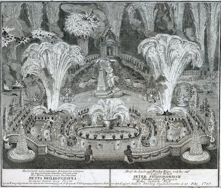 Изображение иллюминации и фейерверка 10 февраля 1745 г. в С.-Петербурге в день рождения вел. кн. Петра Федоровича (гравюря И. А. Соколова)