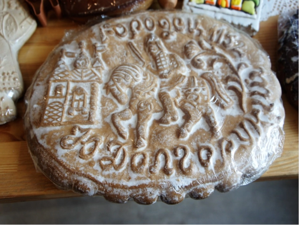 По краю доски вырезаны подтверждающие эту традицию слова: «Сия коврижка вяземская донеси ея честных рук кушайте во здравие».