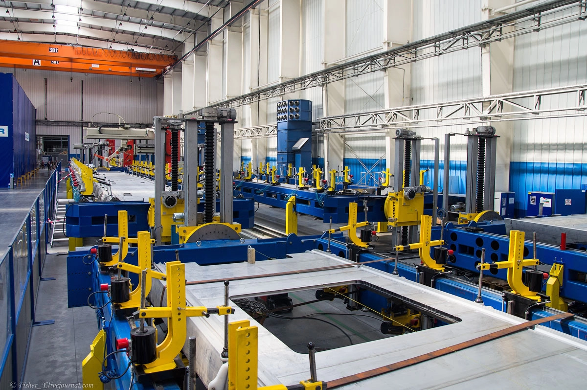 12. При сварке крупногабаритных изделий невозможно избежать сварочных деформаций, поэтому к каждой детали, такой как стенки, пол, крыша, установлена сварочная оснастка, оборудованная кантователем и пневматическими прижимами.