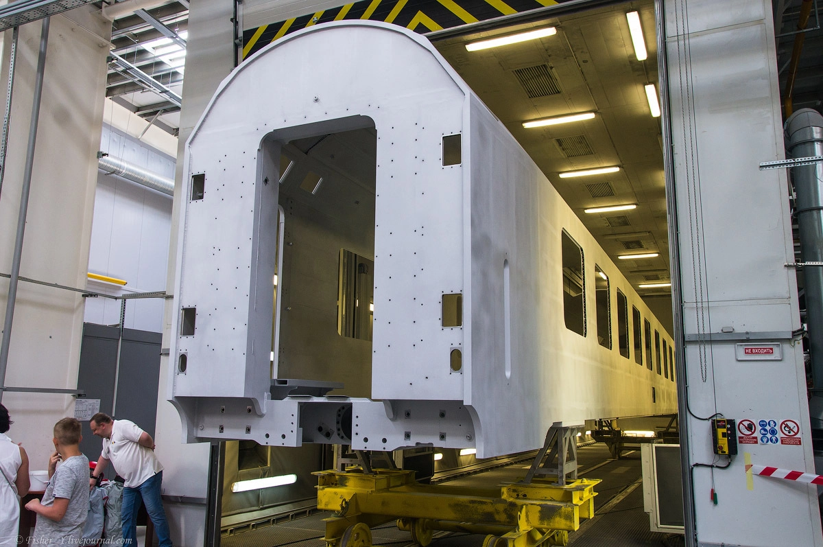 25. Поэтому разные поезда находятся здесь в разной степени готовности, где-то уже установлен салон.