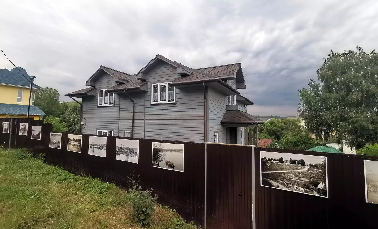 Дальше мы видим как Паустовский гладит собаку. Он, киевский мальчик, беззаветно влюбившийся в окскую Мещёру, случайно попал в Тарусу и остался, и много сделал для неё.