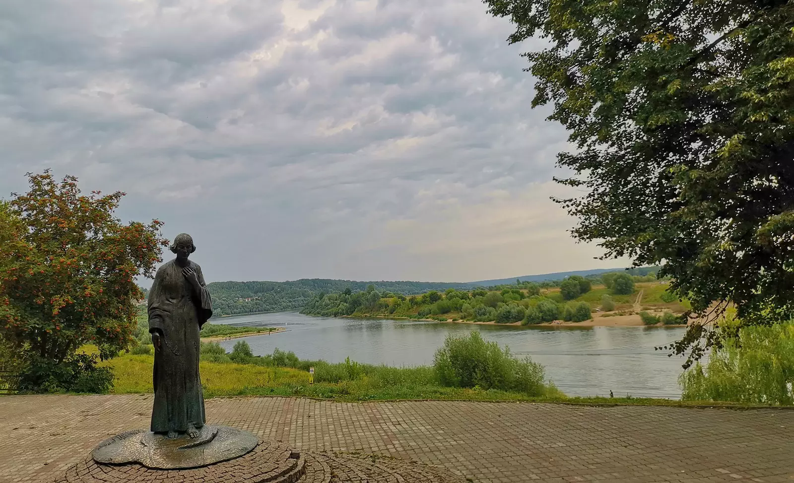 Потом дальше мимо храма и небольшого вернисажа, на набережную к Цветаевой. Творчество Марины Цветаевой ввергает меня в сильные эмоции, раньше я её не понимал до конца, но после Тарусы она стала ближе.