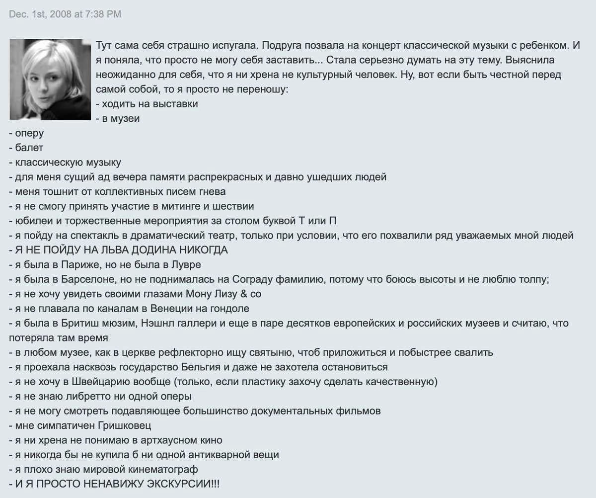 В-третьих, за эти старые посты Любимову ругают те, кто сами на балете были один раз в школе, на опере — ни разу, не сразу ответят, кто написал Полонез Огинского, знания об истории черпают из фильмов Дудя, а иногда тайком смотрят «Дом-2». Зато очень любят писать коллективные письма гнева и петиции на change.org.