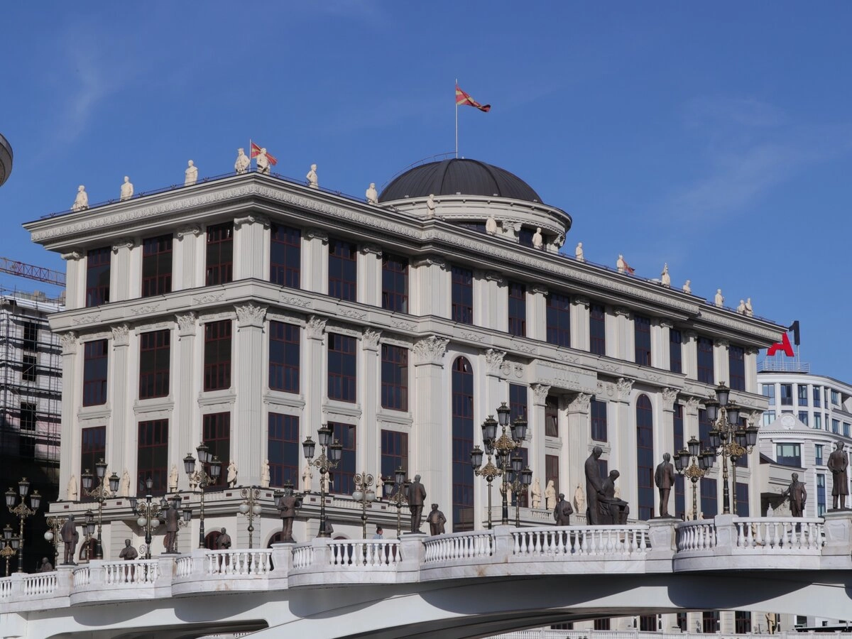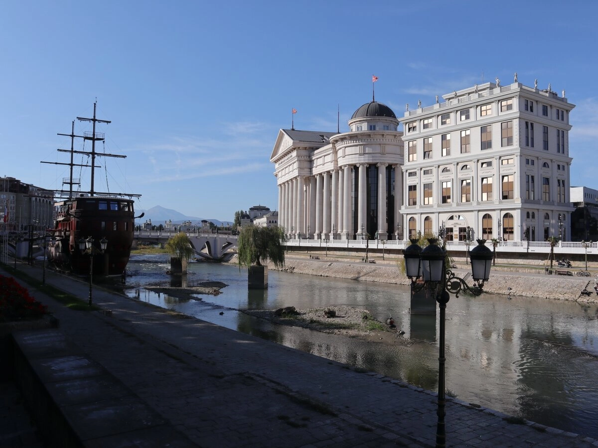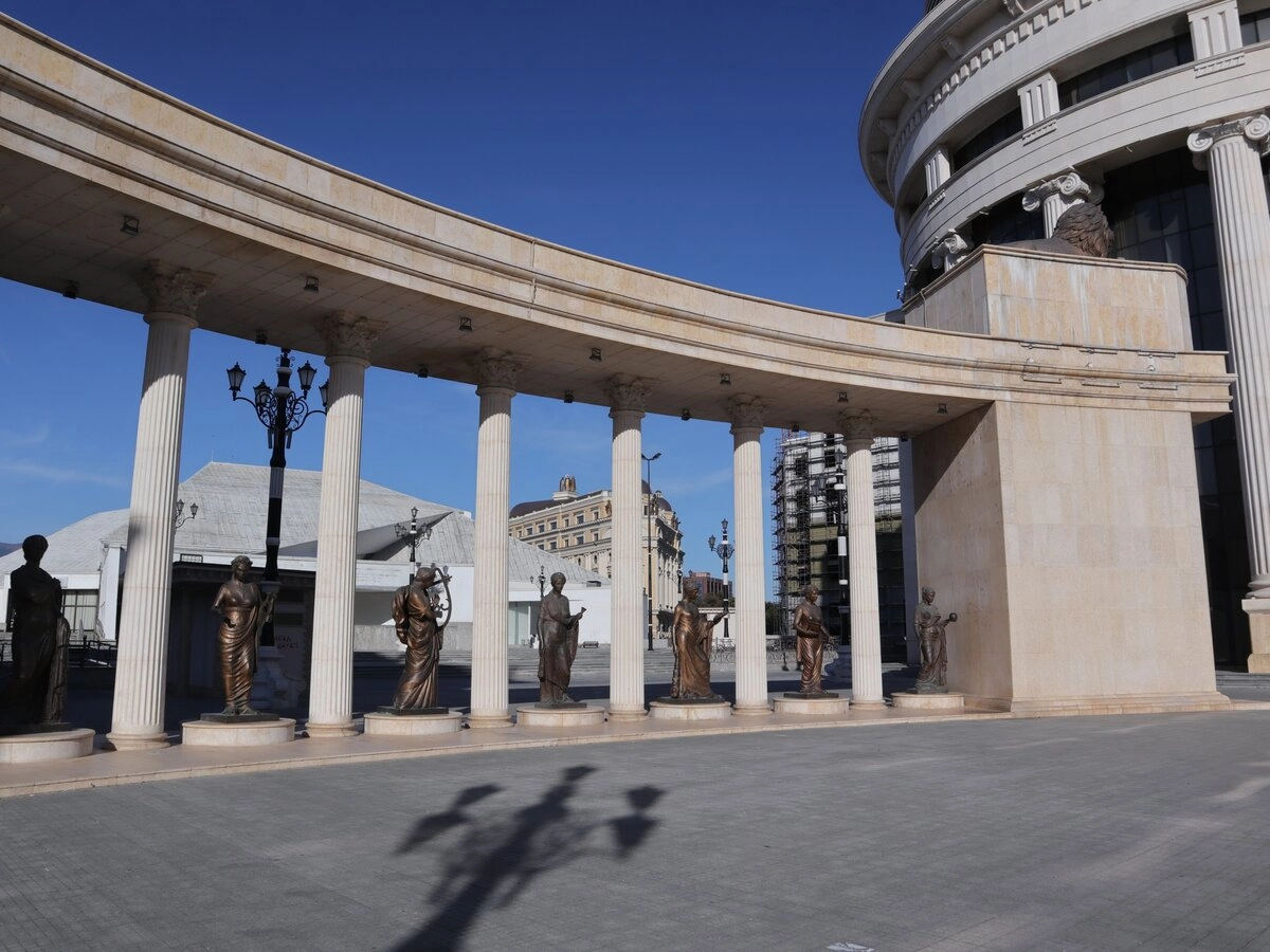 Формирование подобного облика (северо)македонской столицы не закончено — рядом возводятся новые постройки в подобном же колхоз-стиле. Всё же, статус европейской столицы обязывает — если не получается стать Парижем или Римом, то хотя бы надо попытаться немного приблизиться вот такой дешёвой помпезностью.