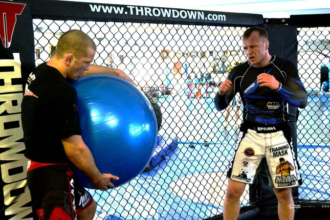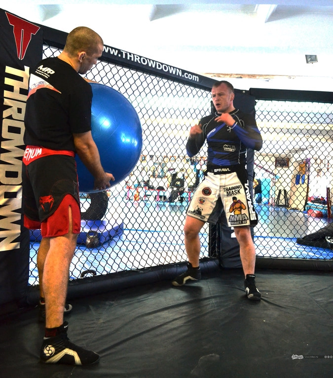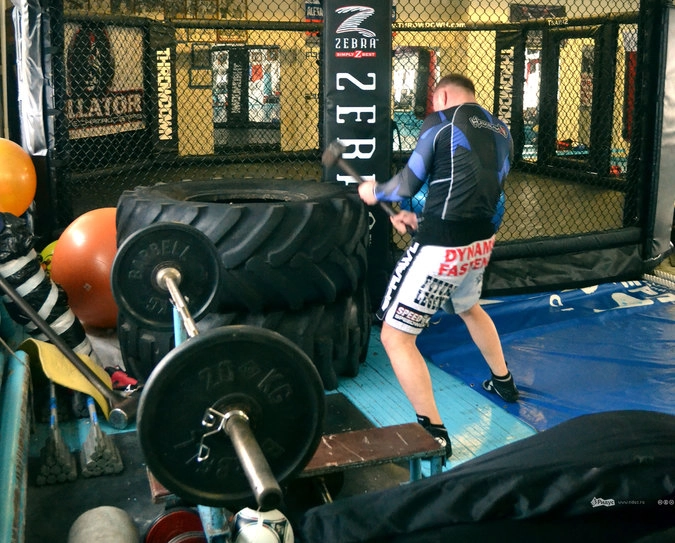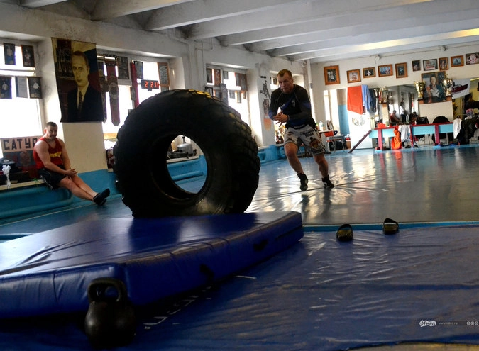 - Очень важна для бойцов нашего смешанного стиля хорошая функциональная подготовка. И здесь мы работаем на то, чтобы у нас было много выносливости в боях. Это тяжелые тренировки. Конкретно сейчас – это круговая тренировка – кроссфит. Направленный на развитие дыхательной системы и взрывных качеств. Все упражнения выполняются с максимальной силой, максимальной скоростью и максимальным разрывом – поделился «Шторм» между очередной серией упражнений.