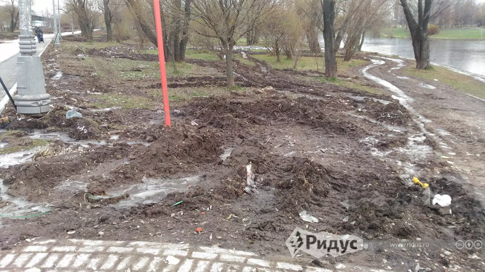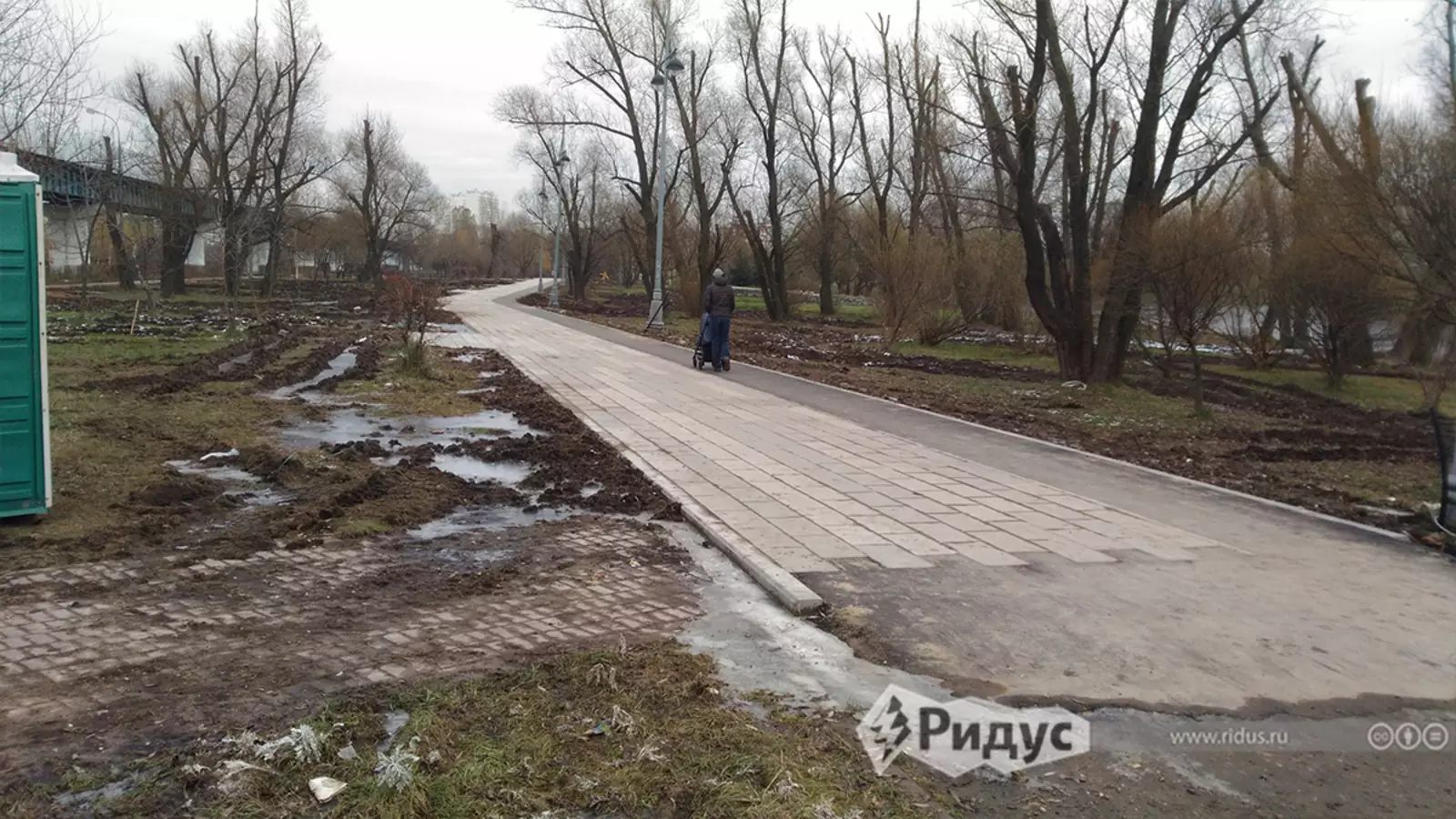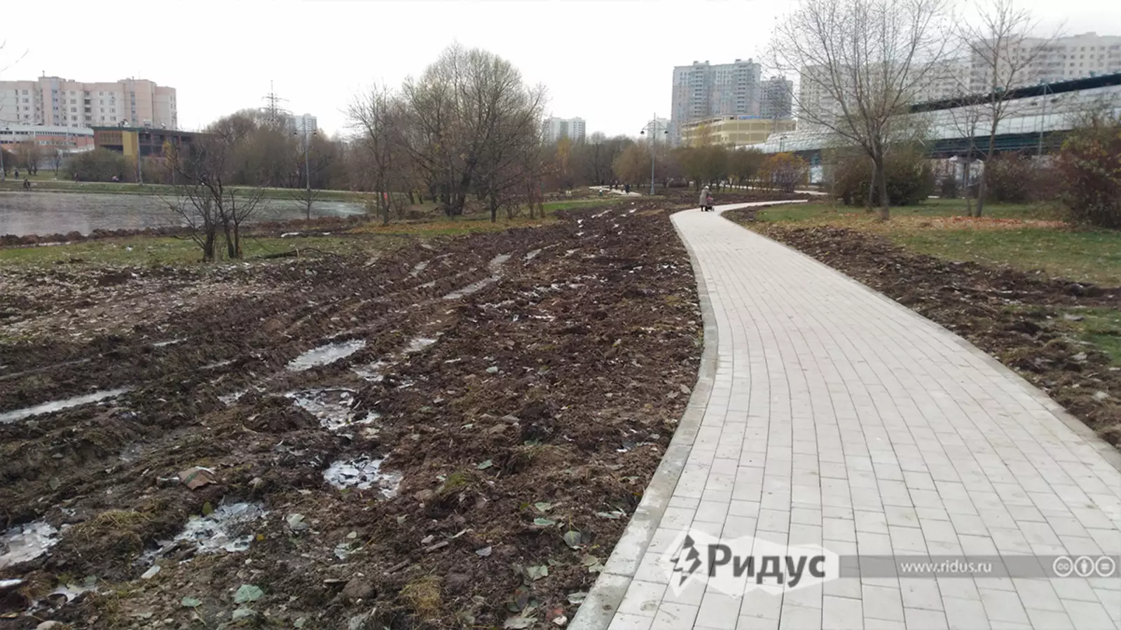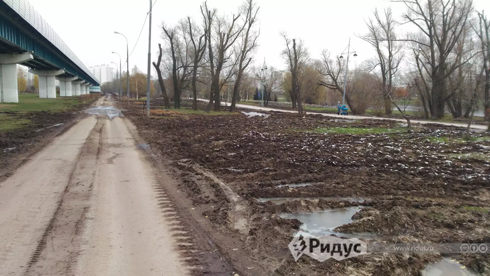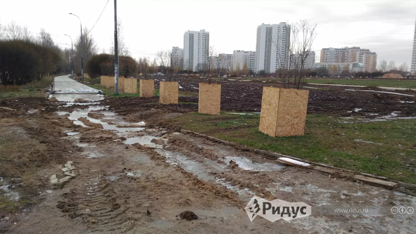 Однако вместо того, чтобы смотреть на красивые картинки проекта, нарисованные умелой рукой художника, оцените лучше реальное состояние местности во время подобного «благоустройства», проходившего в 2017—2018 годах по соседству — в парковой зоне Южного Бутова.