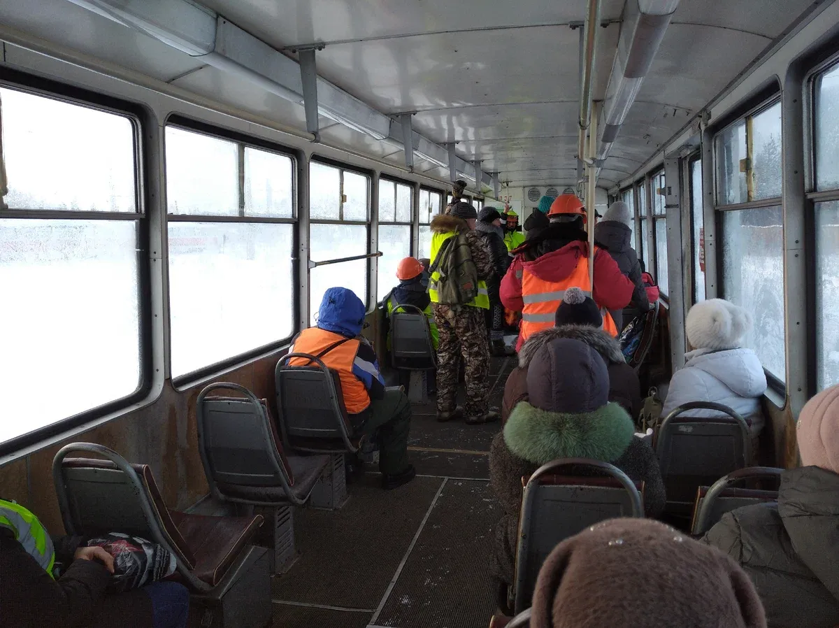 Тем не менее, усть-илимцы любят свой трамвай, и очень оказались недовольны решением его закрыть. Я уже писал про то, как объявление о «прощальных рейсах» в выходные спровоцировало в нём настоящую давку. Во вторник, когда я уже поехал на трамвае, там проходила экскурсия для местного общества инвалидов.