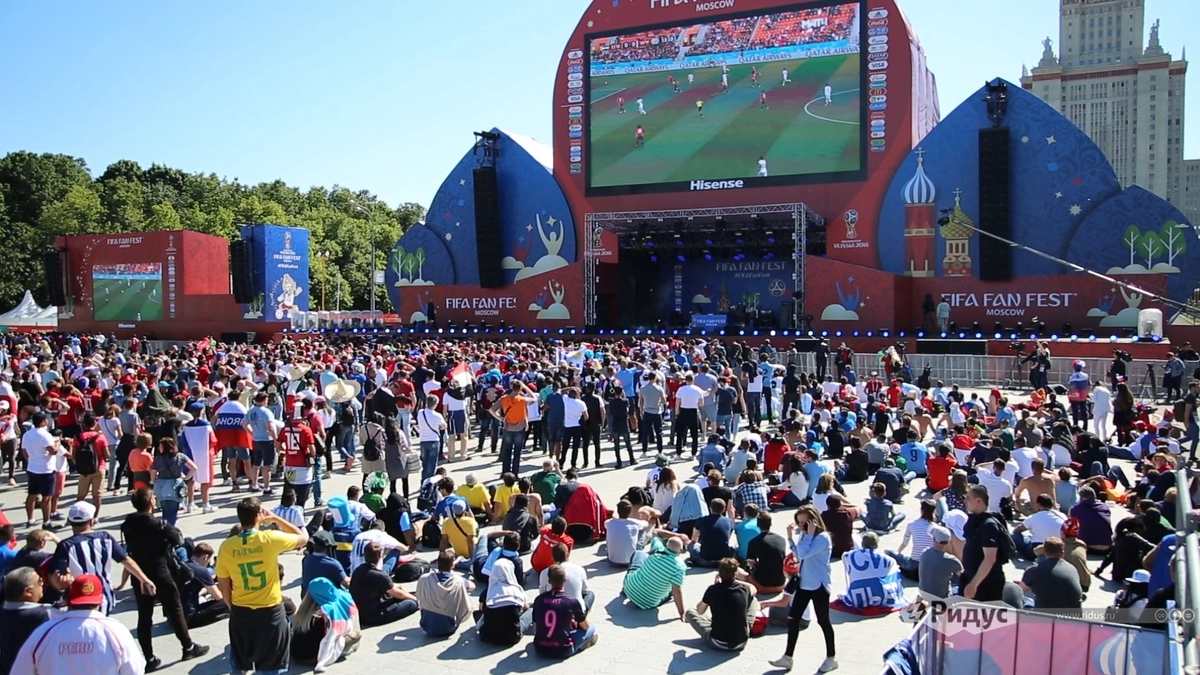 Кроме того, по всей территории фан-зоны разбросаны экраны поменьше. Видно и слышно везде хорошо.