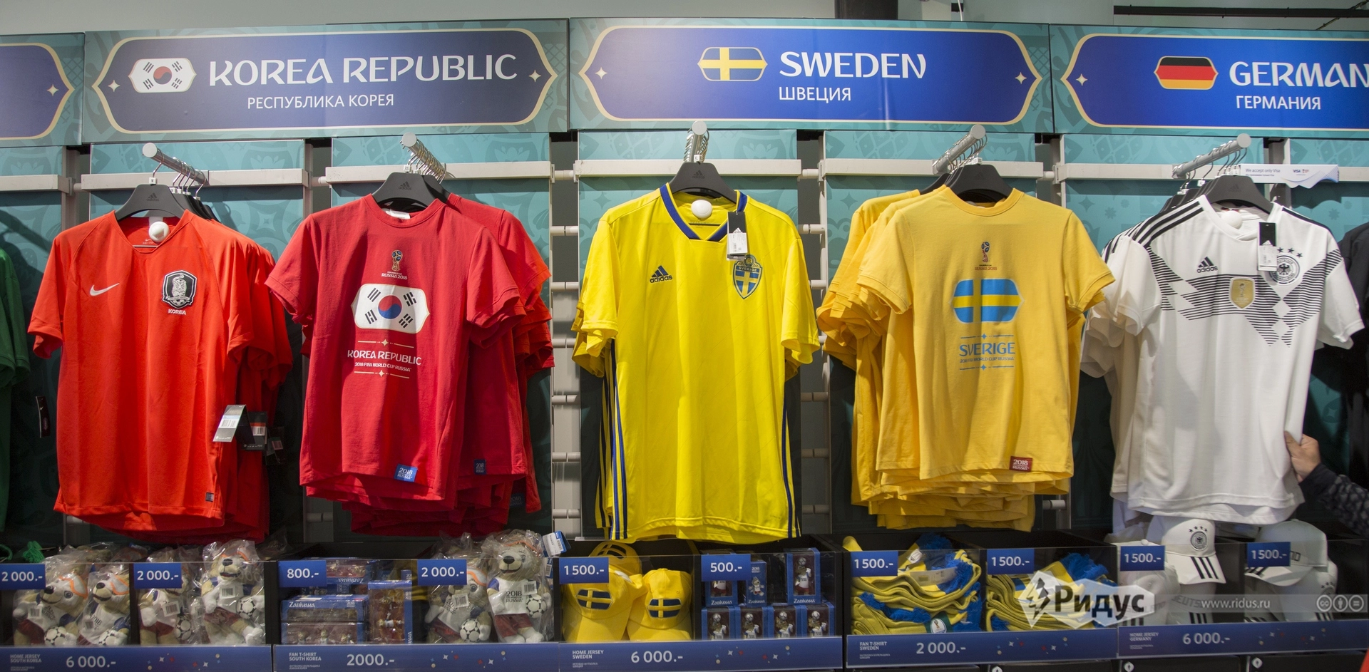 У выхода в сторону Воробьевых гор расположен отличный гигантский фан-шоп. «Прайсы» — не сказать, чтобы низкие, но и не заоблачные. Хлопковая футболка «адидас» в национальных цветах с официальной символикой — 2 тысячи, прикольные значки — по четыреста.