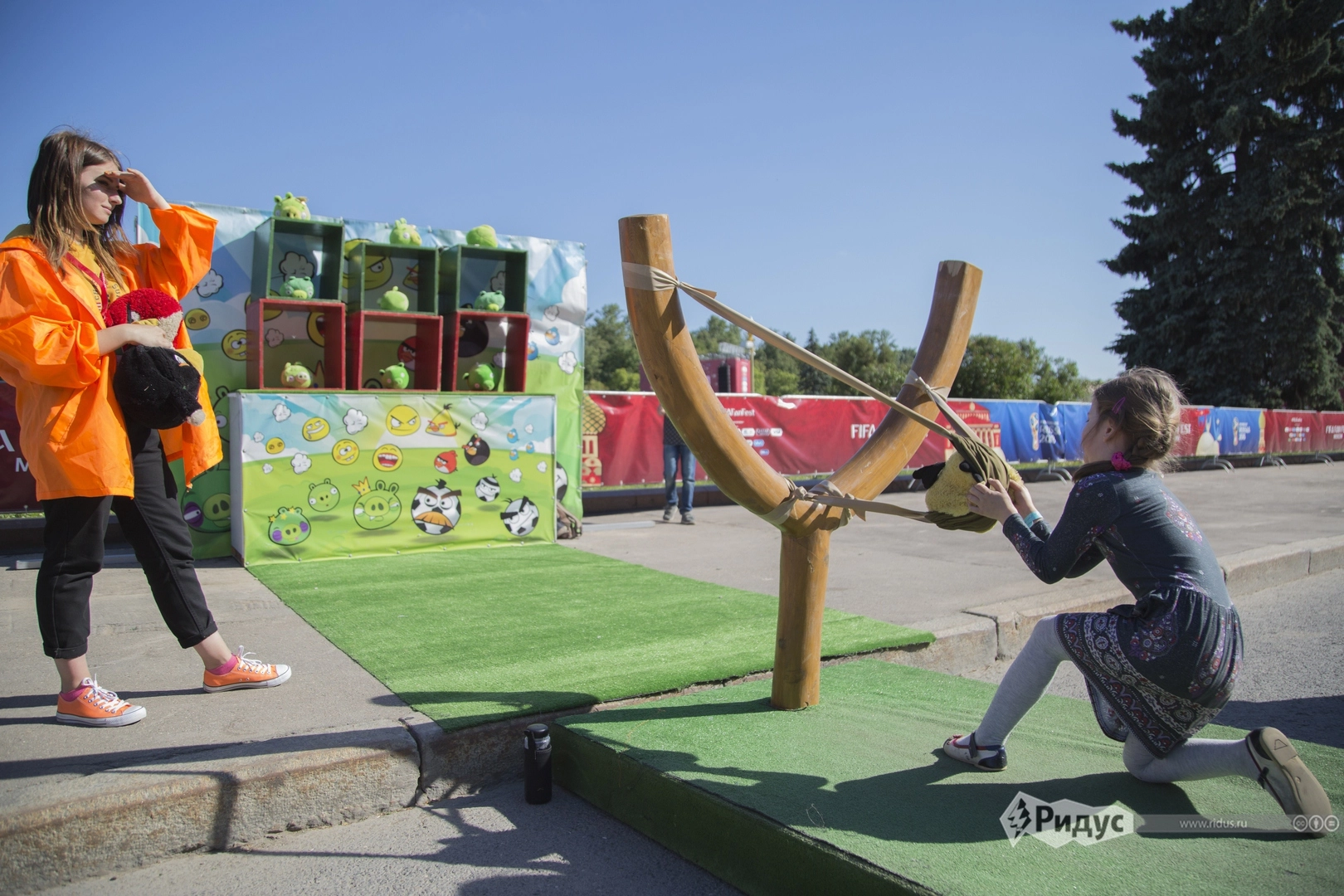 Для детей полно всевозможных батутов, рогаток из «Angry Birds» и прочих подобных развлечений. Все юные болельщики, кого там видели, были в восторге.