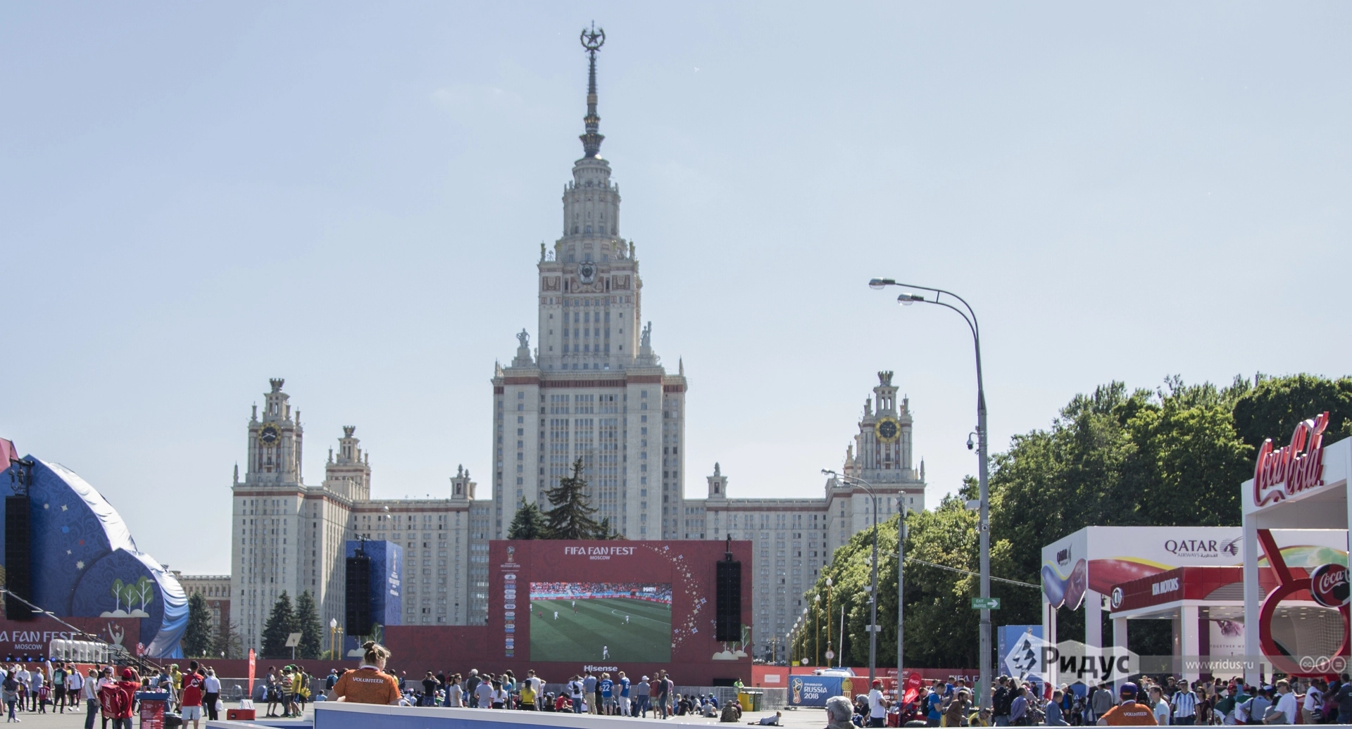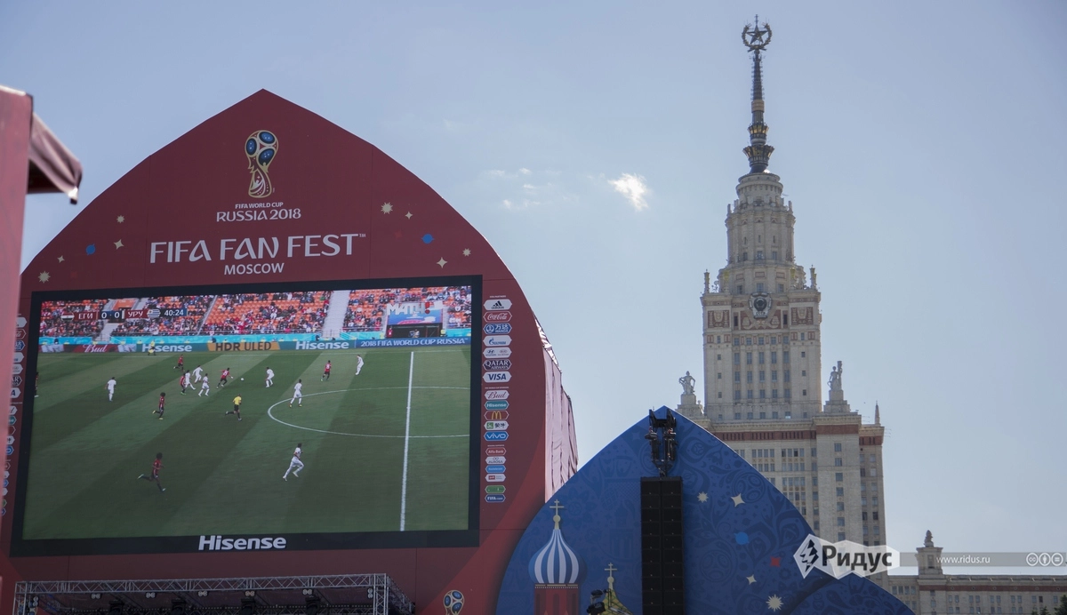 Что внутри? Во-первых, большое количество зон с экранами, где можно посмотреть все матчи чемпионата мира 2018. Центральный — самый большой и со сценой — находится прямо напротив здания МГУ. В перерывах между матчами там выступают диджеи и музыканты.