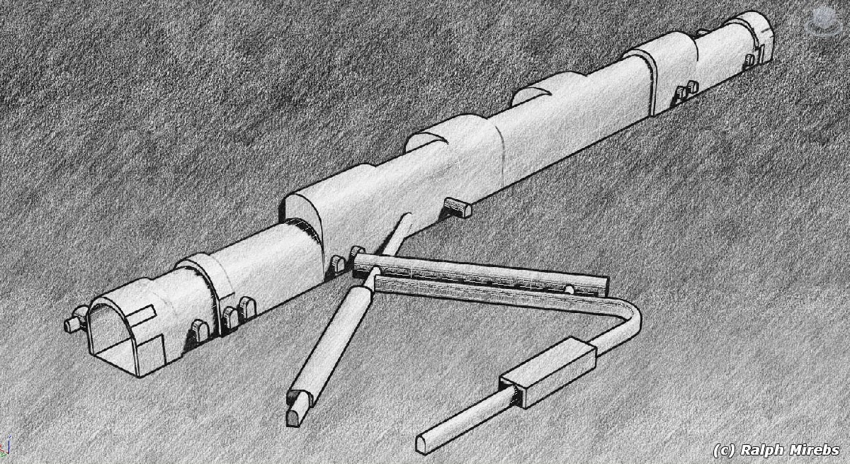 Кроме картинки привожу ссылку на простую схематичную трёхмерную модель подземных выработок — после загрузки её можно крутить клавиатурными стрелочками, а колёсиком мышки приближать и удалять.http://www.mirebs.com/fotki/euro/palermo/PP_base.html